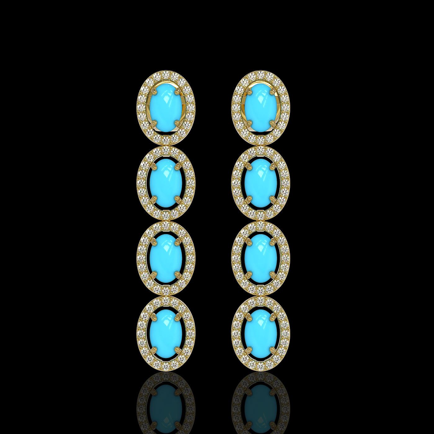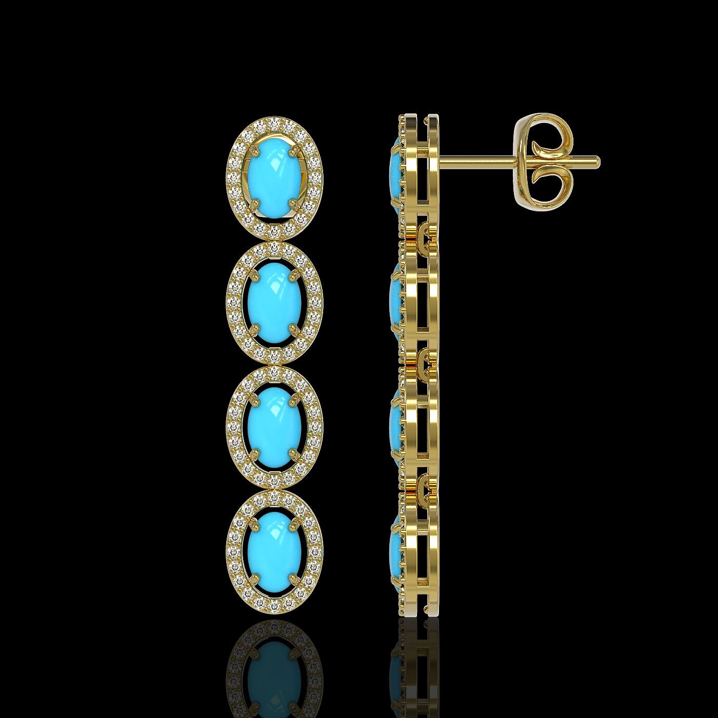 REF-110W9H - SKU: 46006 ---- 4.84 ctw Turquoise & Diamond Micro Pave Halo Earrings 10k Yellow Gold