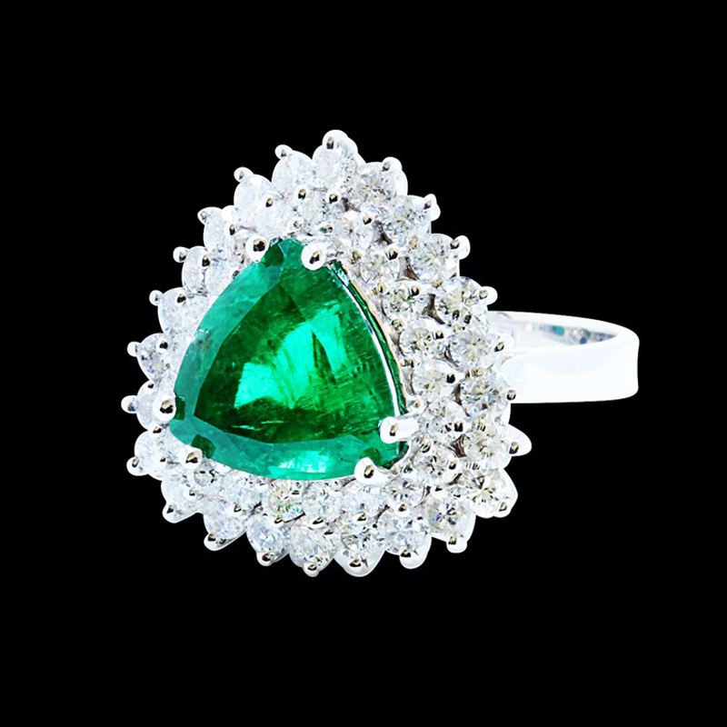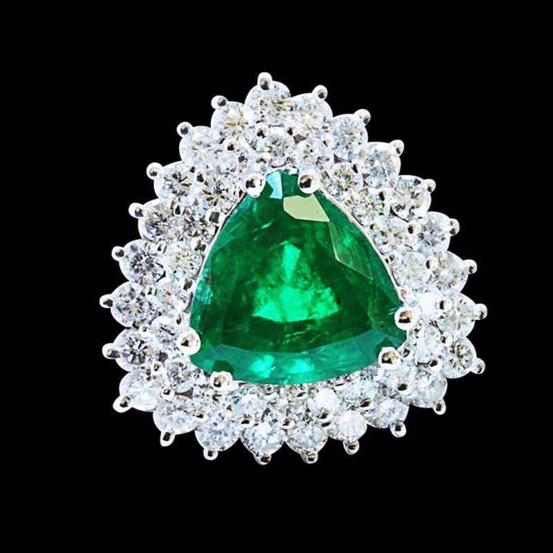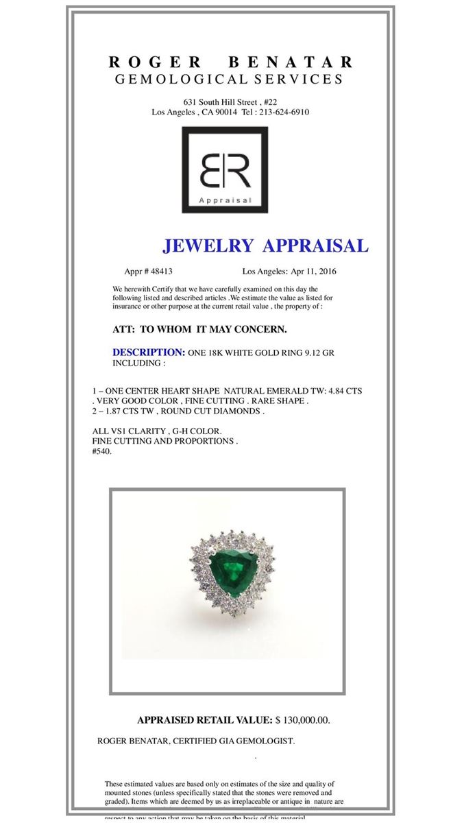 18K WHITE GOLD NATURAL COLUMBIAN EMERALD RING:9.12 GRAMS/COLUMBIAN EMERALD:4.84CT/DIAMOND:1.87CT/#GVR1161