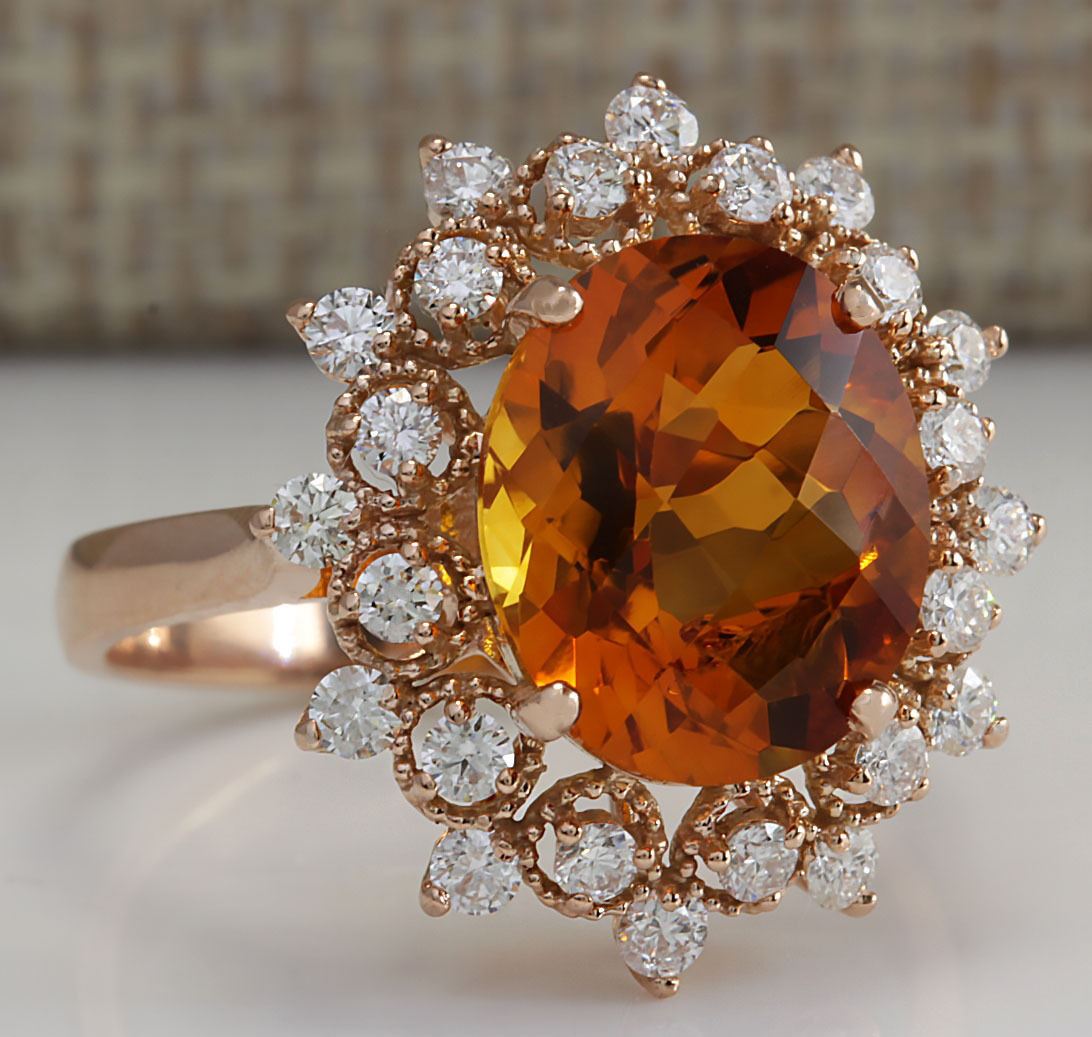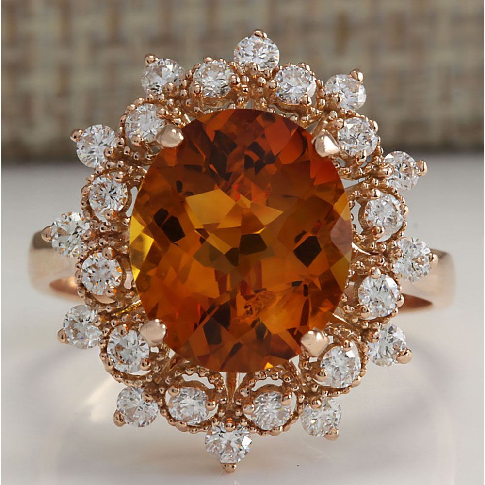 4.85 CTW Natural Madeira Citrine And Diamond Ring 18K Solid Rose Gold