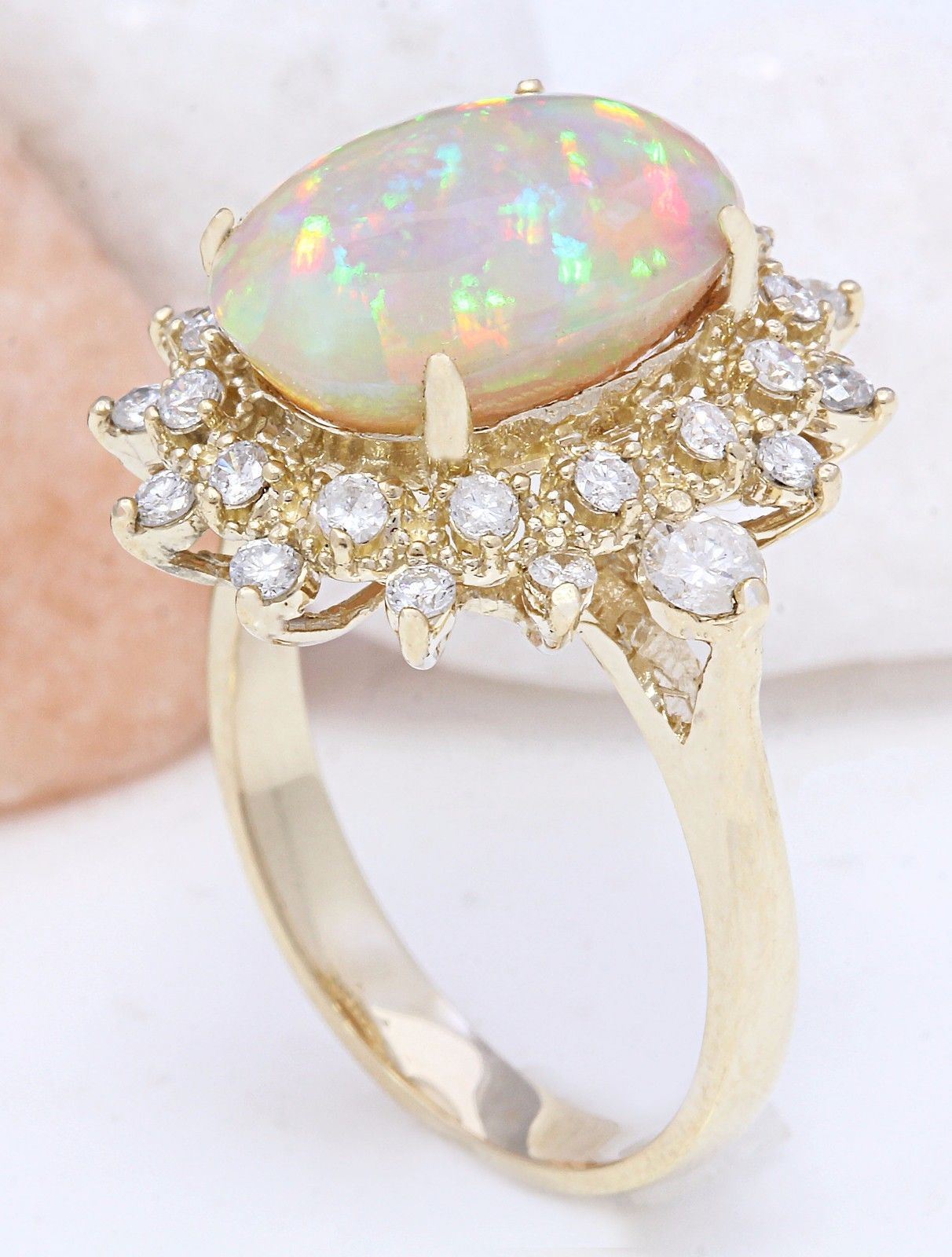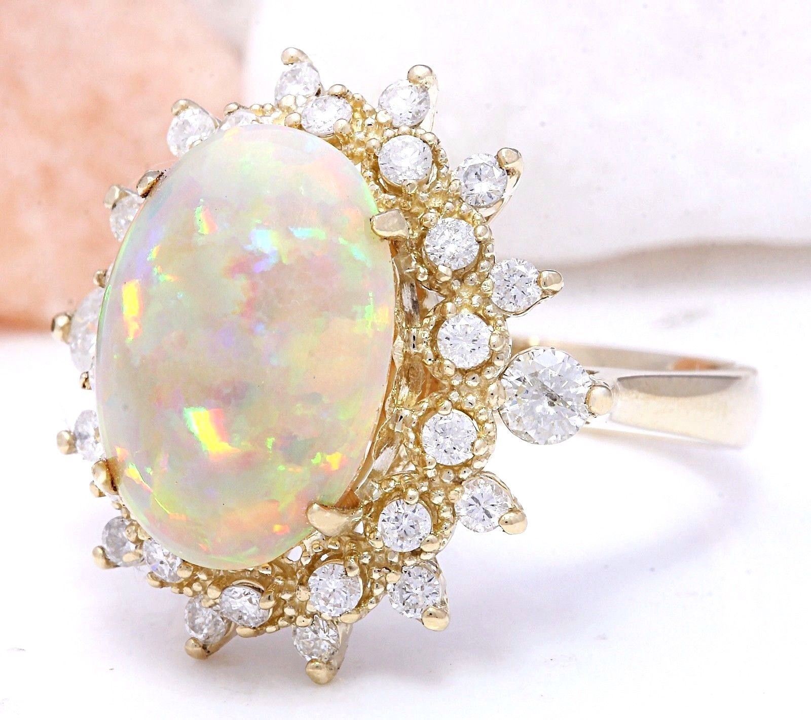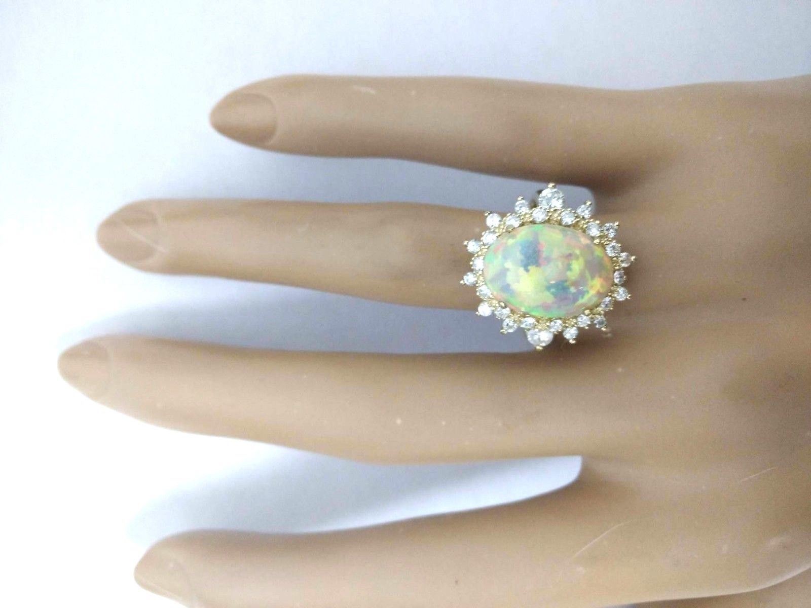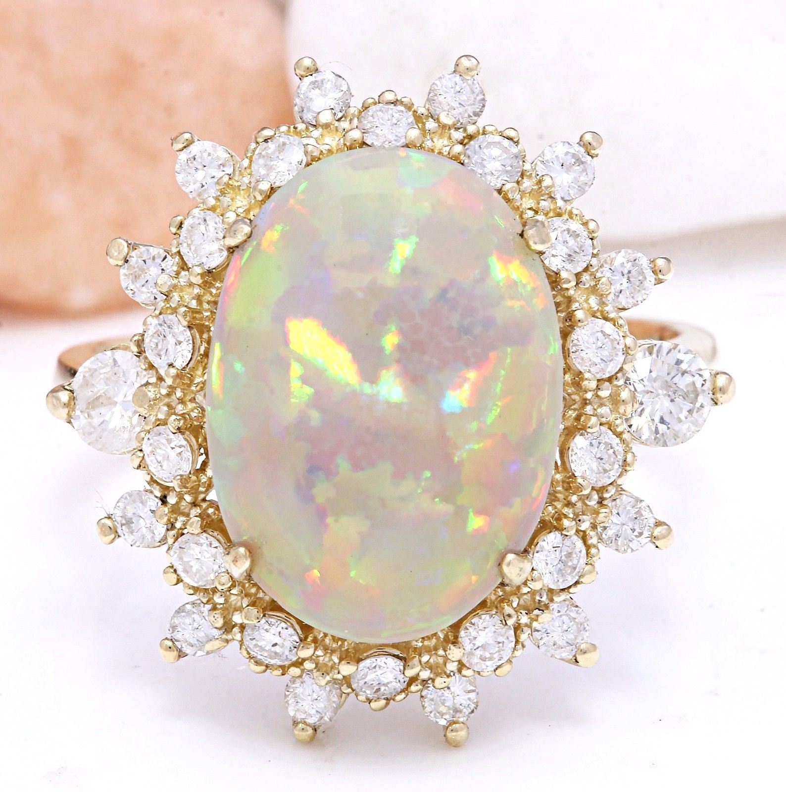 4.85 Carat Natural Opal 14K Solid Yellow Gold Diamond Ring