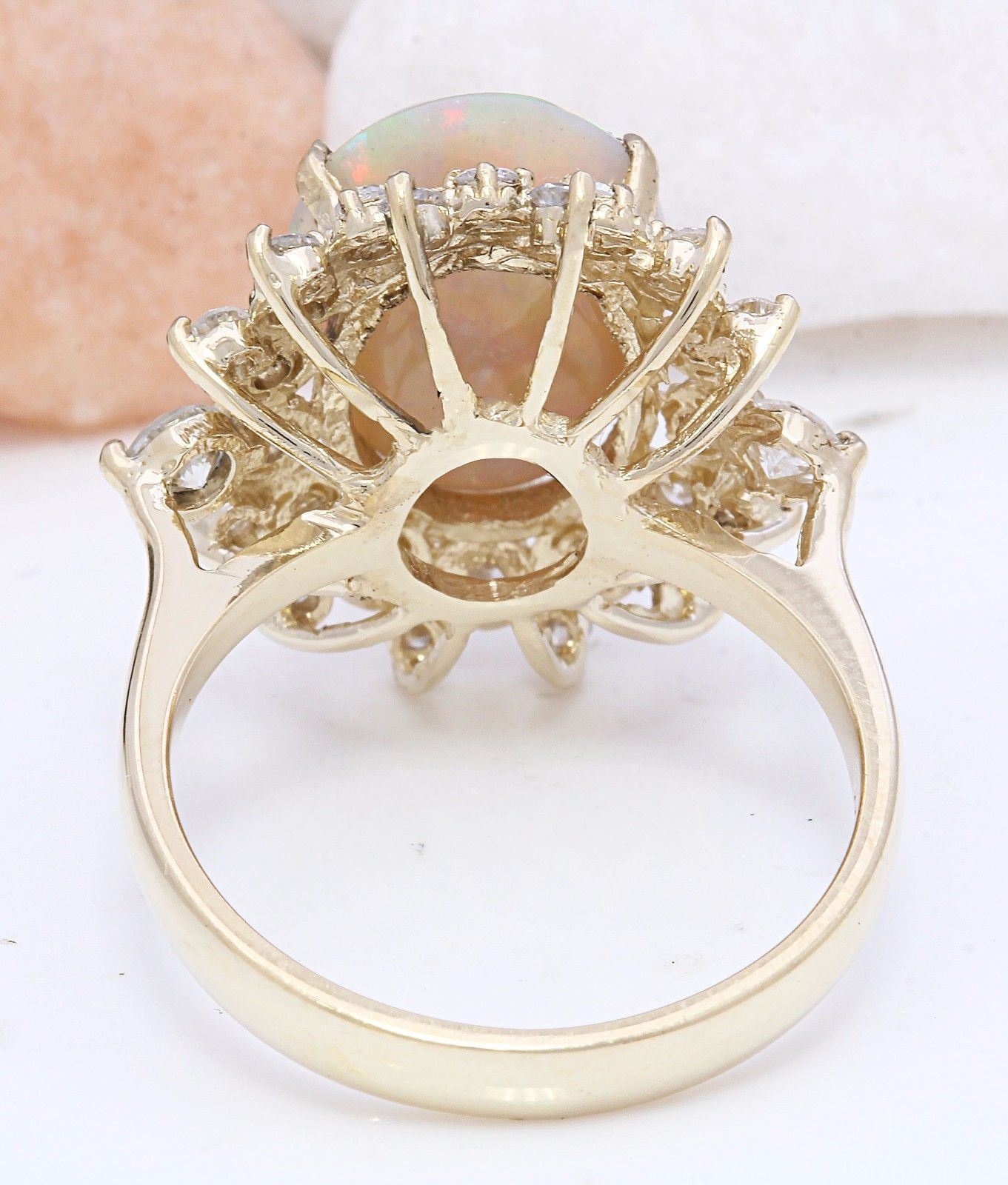 4.85 Carat Natural Opal 14K Solid Yellow Gold Diamond Ring