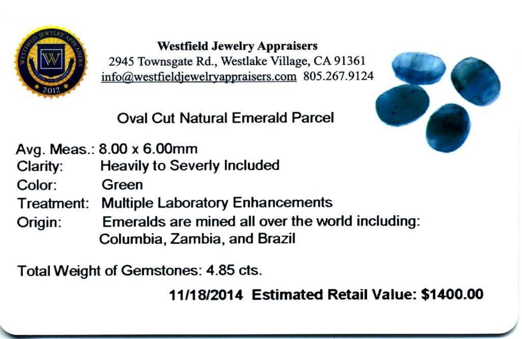 4.85cts. Oval Cut Natural Emerald Parcel Westfield Appraised.
