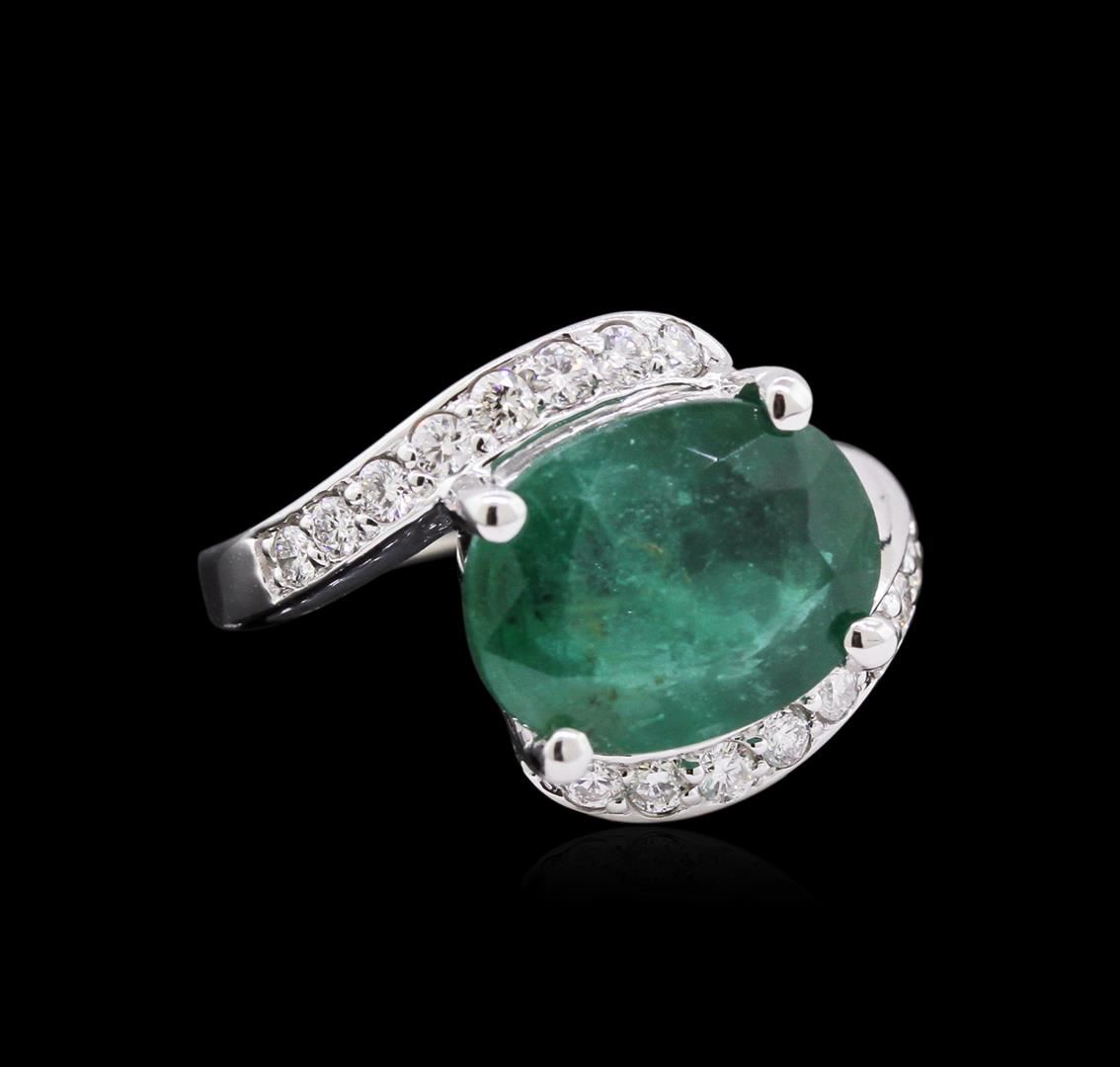 One ring featuring: 14KT white gold weighing 5.10 grams containing one emerald with a total weight of 4.85ct and diamonds with a total weight of 0.38ct.