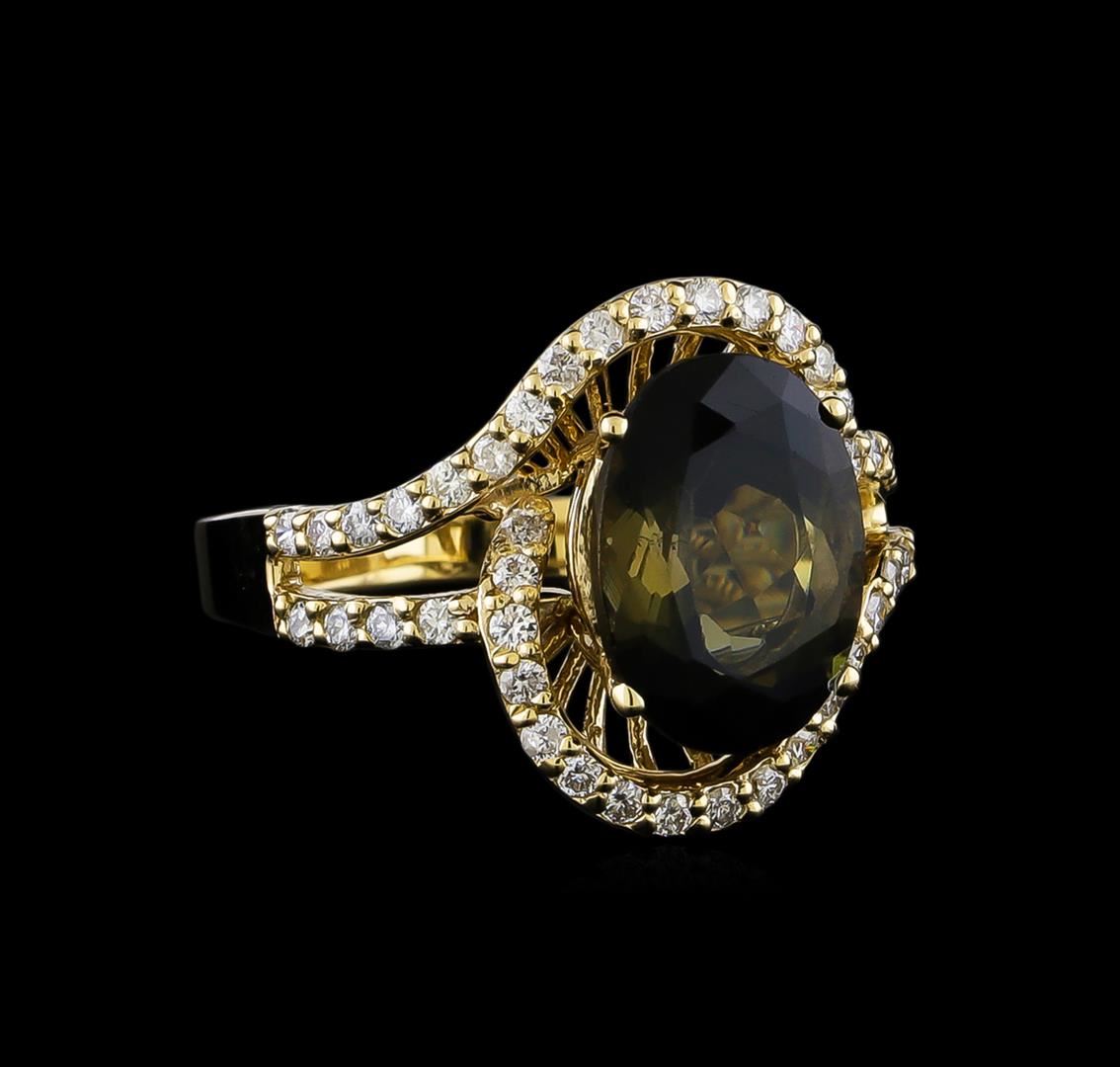 One ring featuring: 14KT yellow gold weighing 4.84 grams containing one tourmaline weighing 4.85ct and diamonds weighing 0.50ctw.