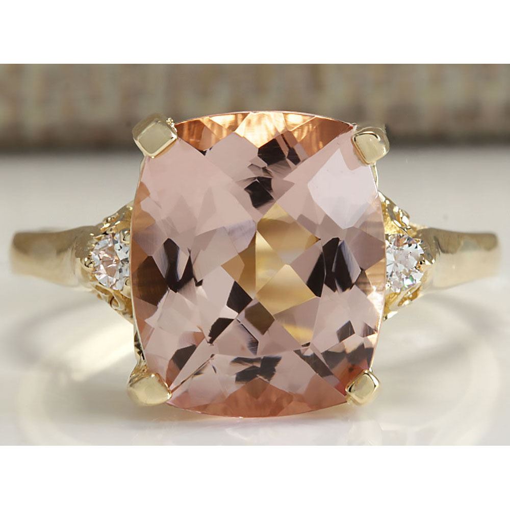 4.86 CTW Natural Morganite And Diamond Ring 18K Solid Yellow Gold