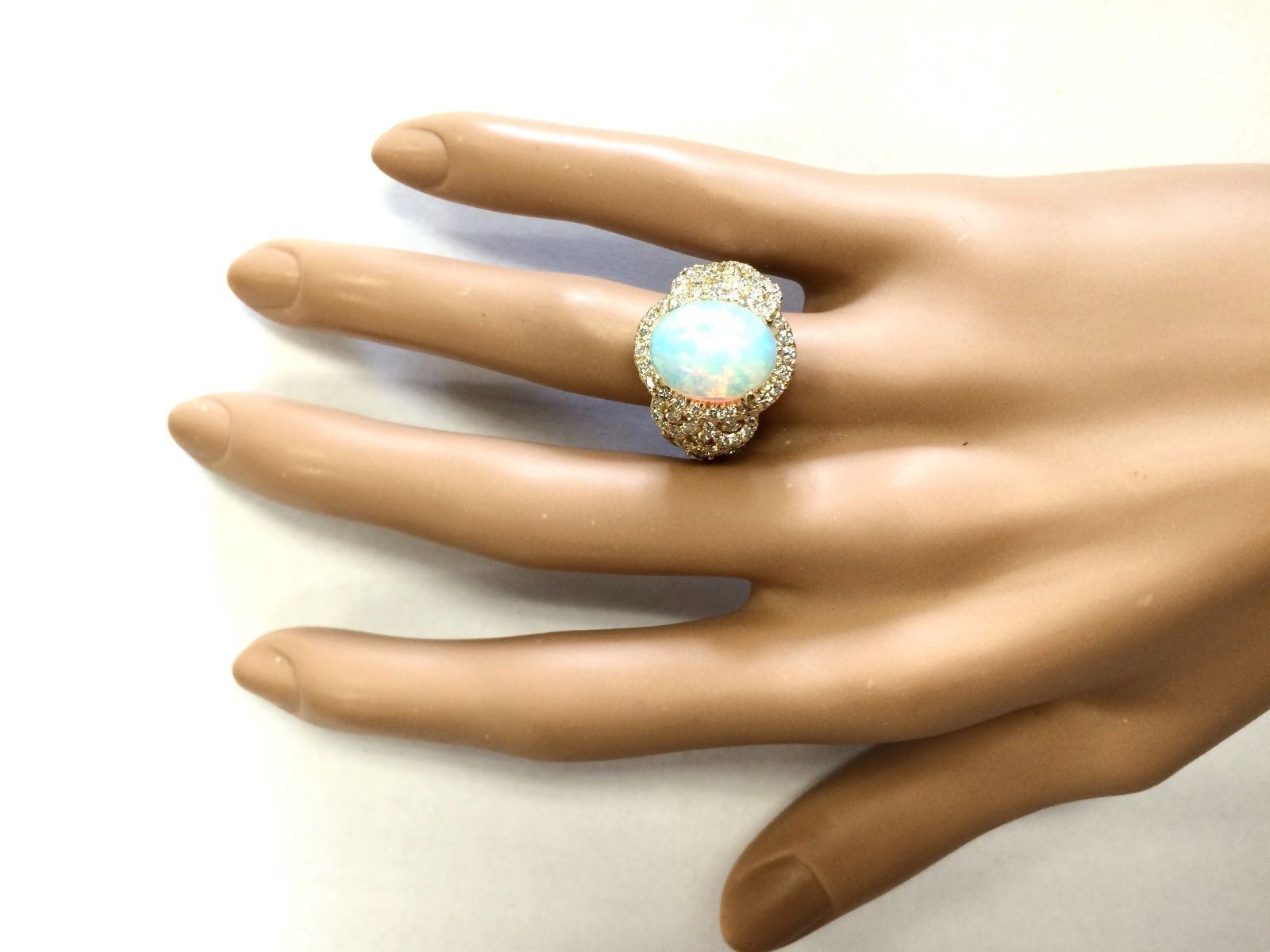 4.86 CTW Natural Opal And Diamond Ring In 14k Yellow Gold