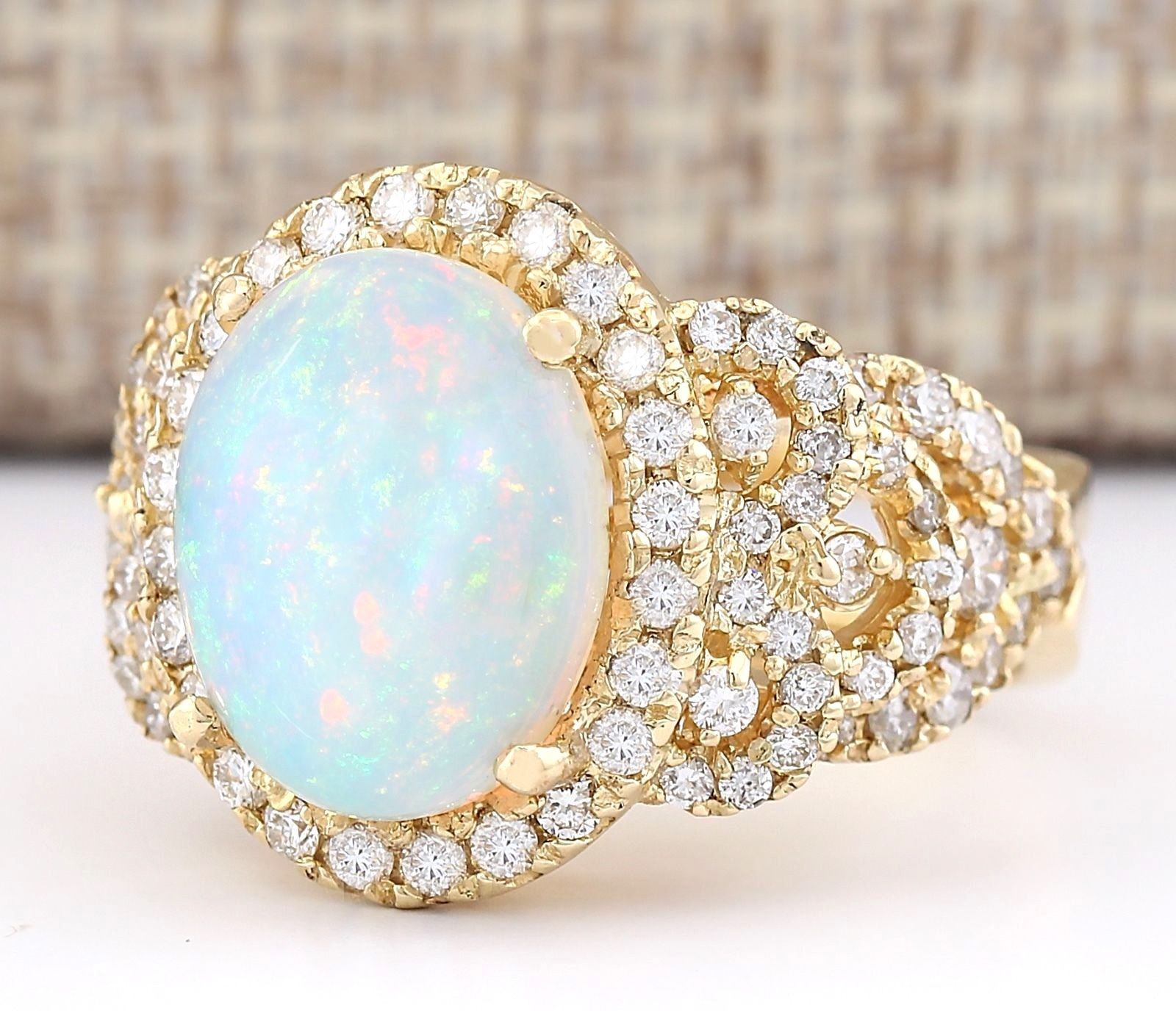 4.86 CTW Natural Opal And Diamond Ring In 18K Yellow Gold