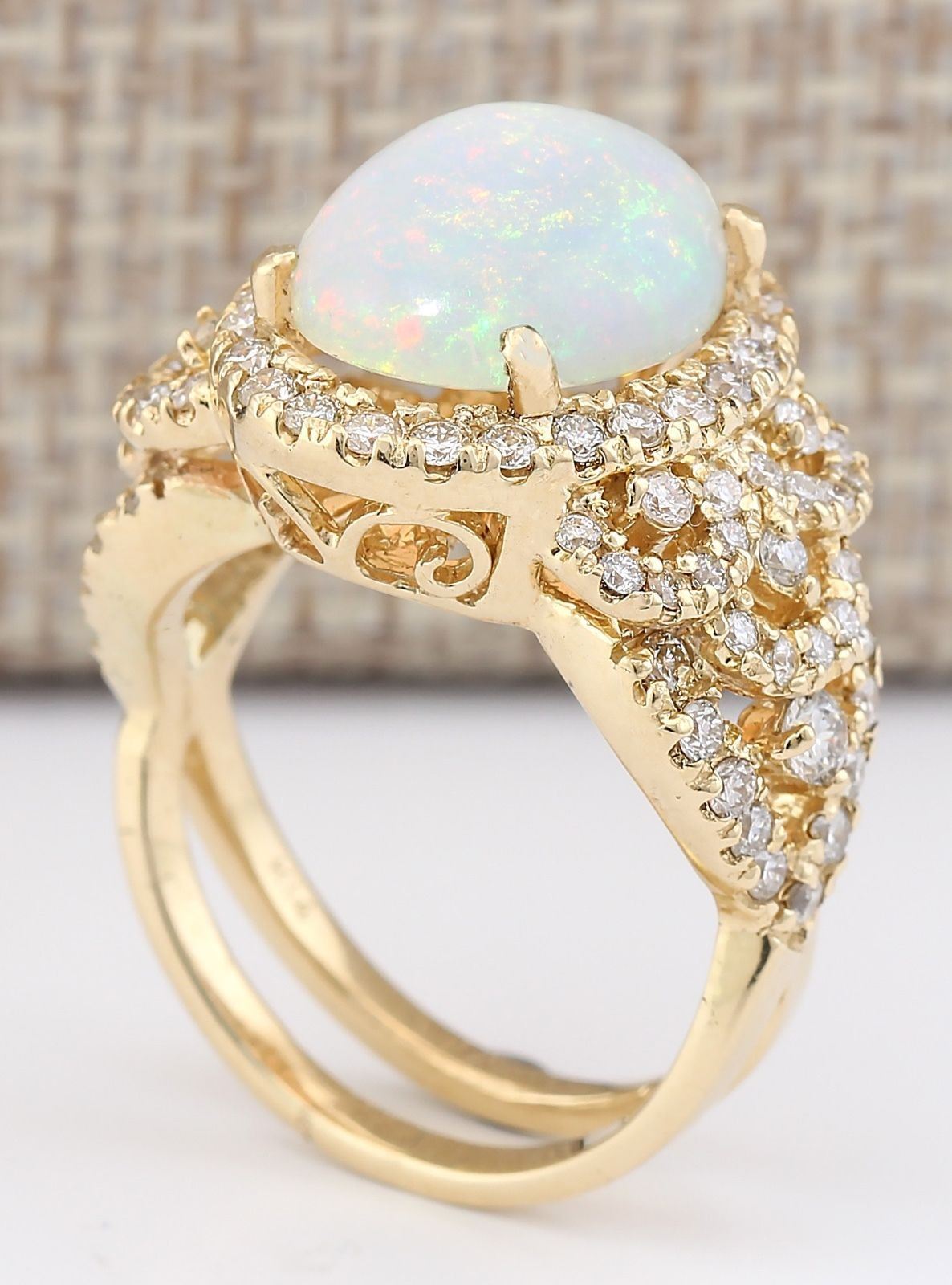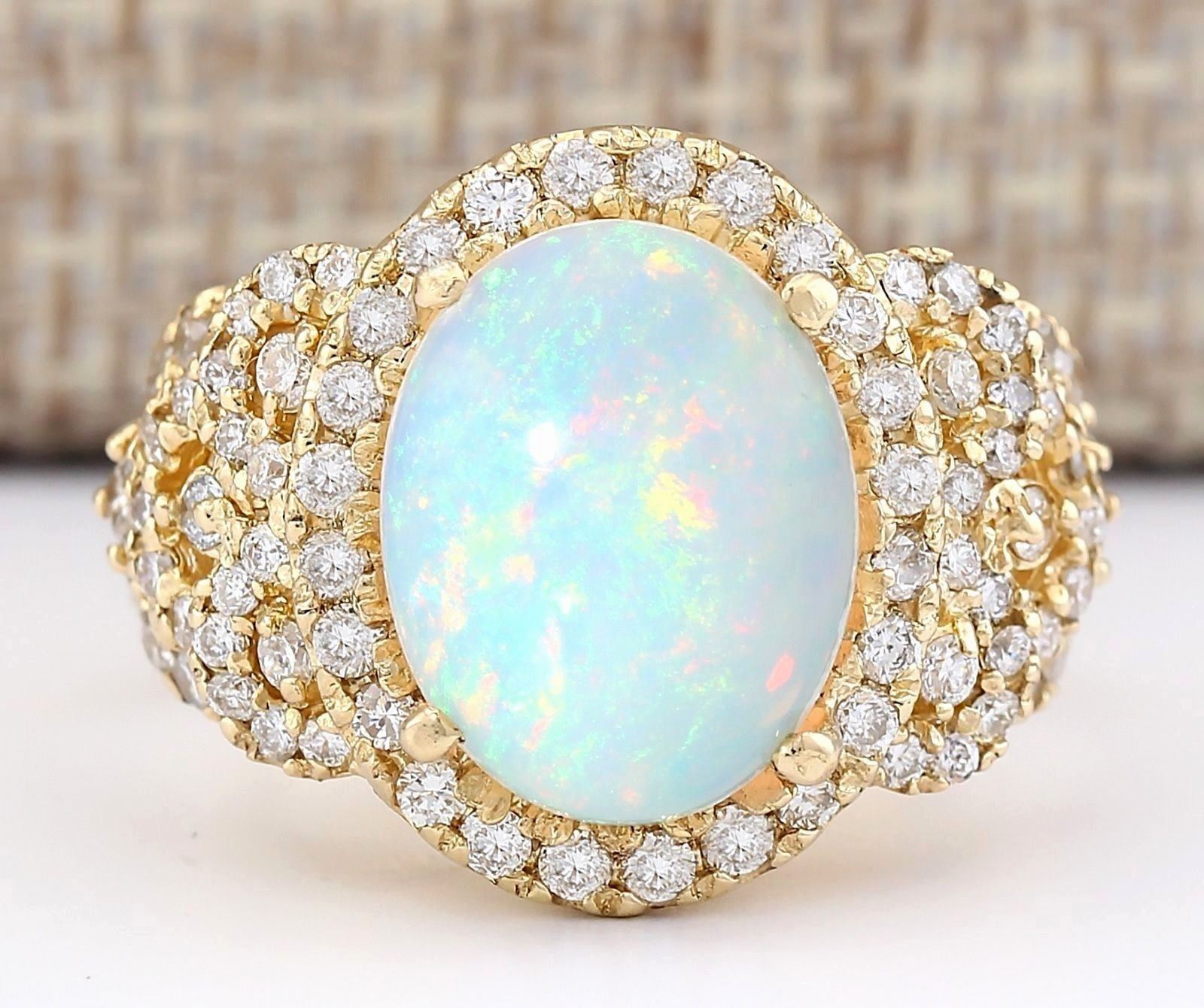 4.86 CTW Natural Opal And Diamond Ring In 18K Yellow Gold