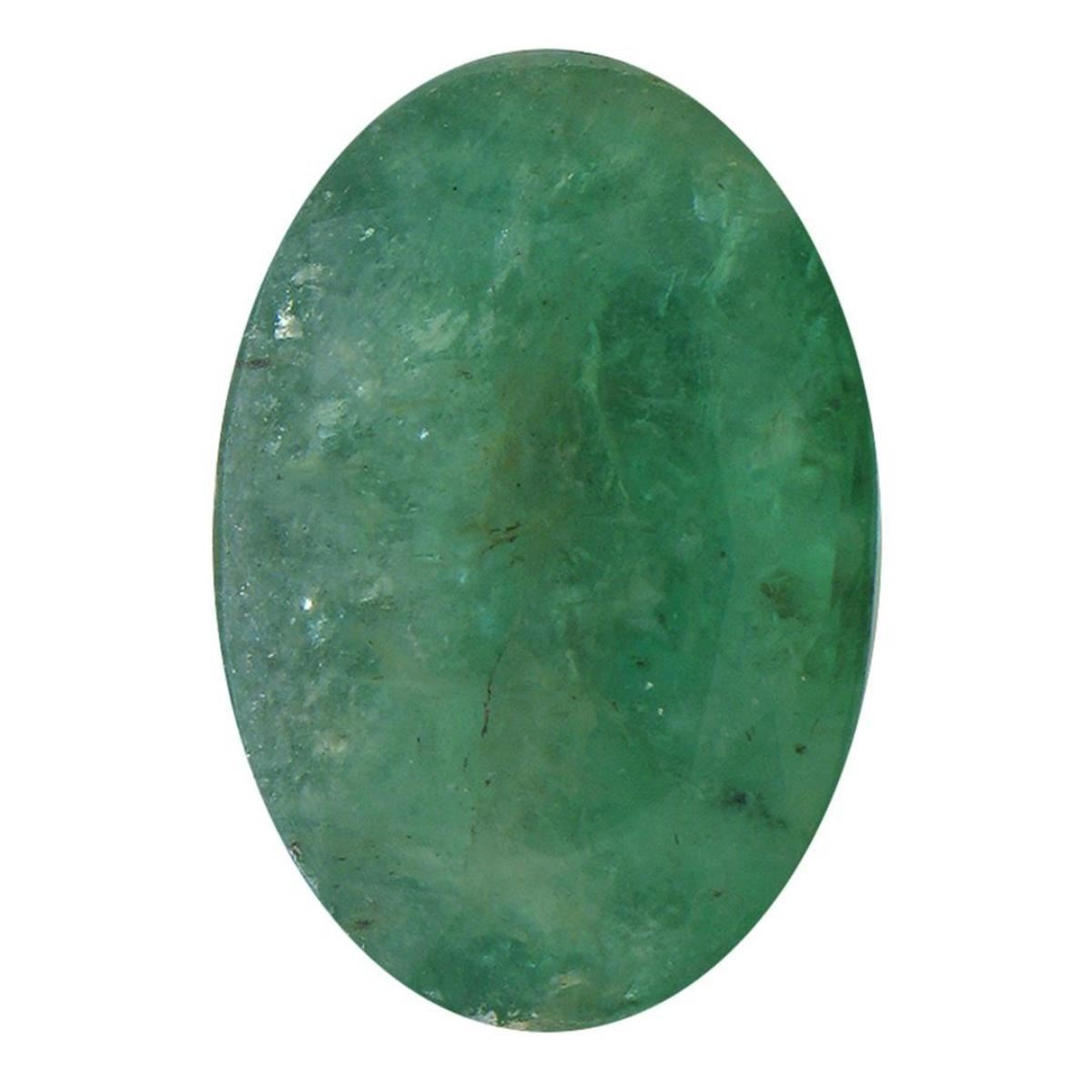One oval cut natural emerald, measuring 13.00 x 8.90 x 6.20mm, exact weight 4.86ct., clarity is heavily included, type III, medium dark, very slightly grayish, very slightly bluish green color, (GIA vslbG 6/3) Westfield Appraised.