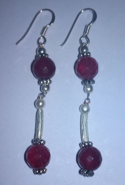 4.860g Earring of Ruby and Pearl Sterling 925 Silver
