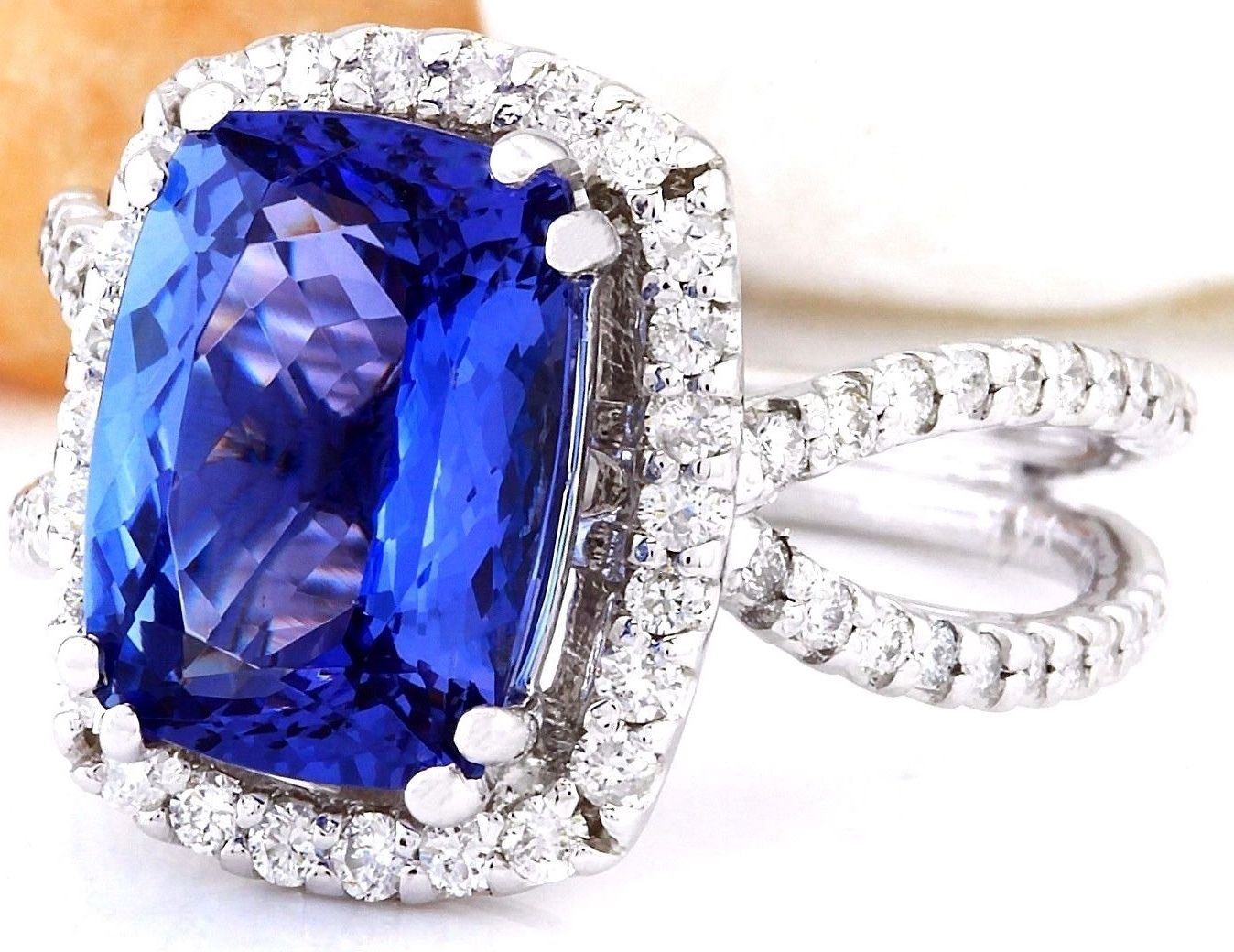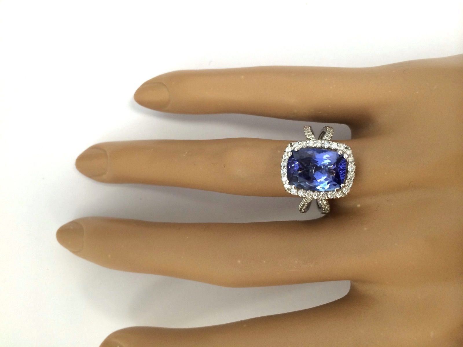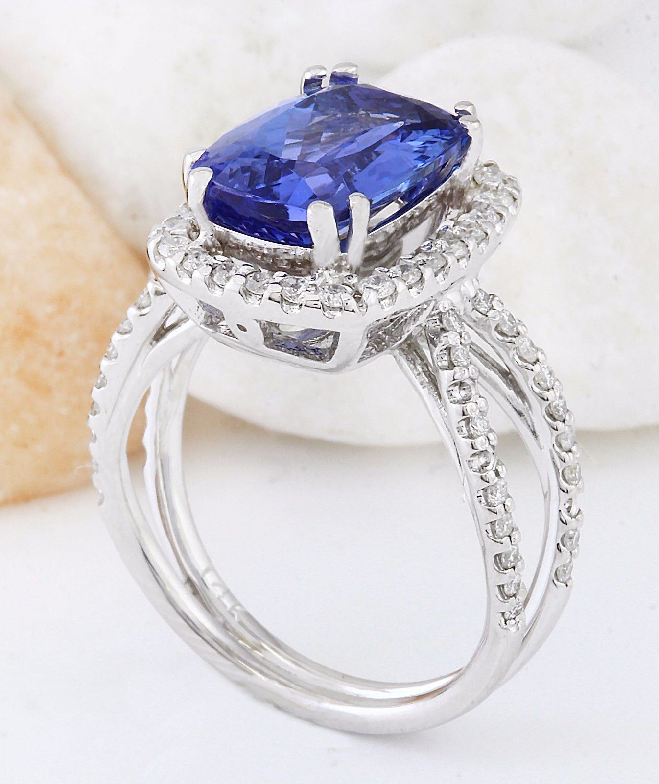 4.88 Carat Natural Tanzanite 18K Solid White Gold Diamond Ring