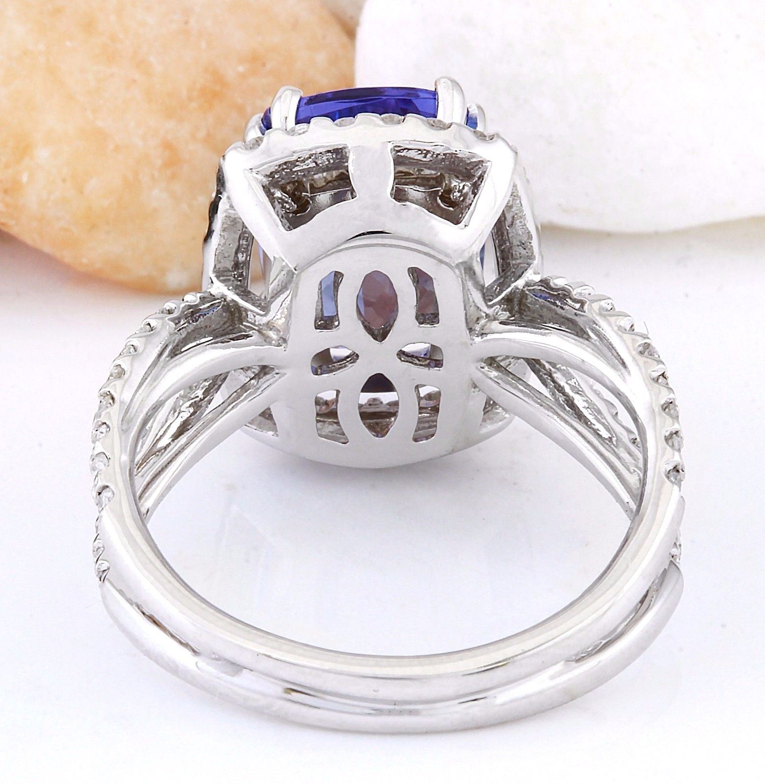 4.88 CTW Natural Tanzanite 18K Solid White Gold Diamond Ring