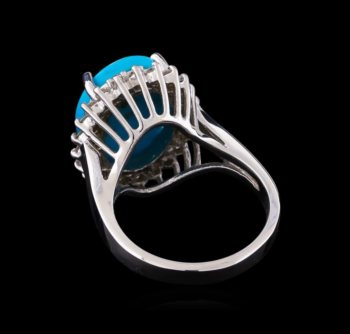 One ring featuring: 14KT white gold weighing 6.47 grams containing one turquoise center stone with a total weight of 4.88ct and diamonds with a total weight of 0.62ct.