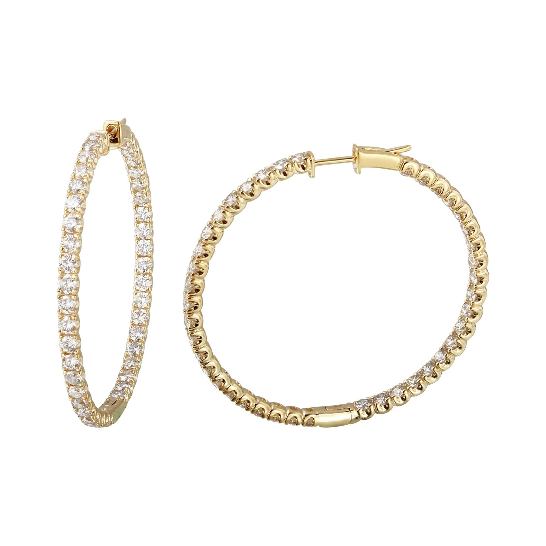 REF-463A6V - SKU: JF379114 ---- 4.89 CTW White Round Diamond Hoop Earring 14K Yellow Gold