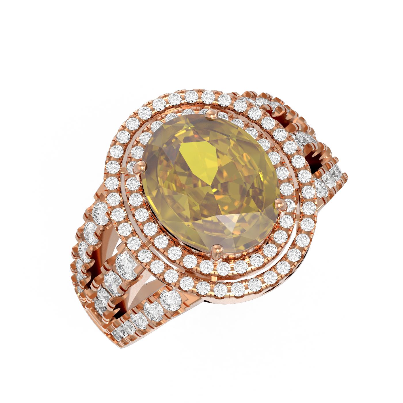 SKU: 54690 ---- 4.89 ctw Canary Citrine & Diamond Ring 18K Rose Gold