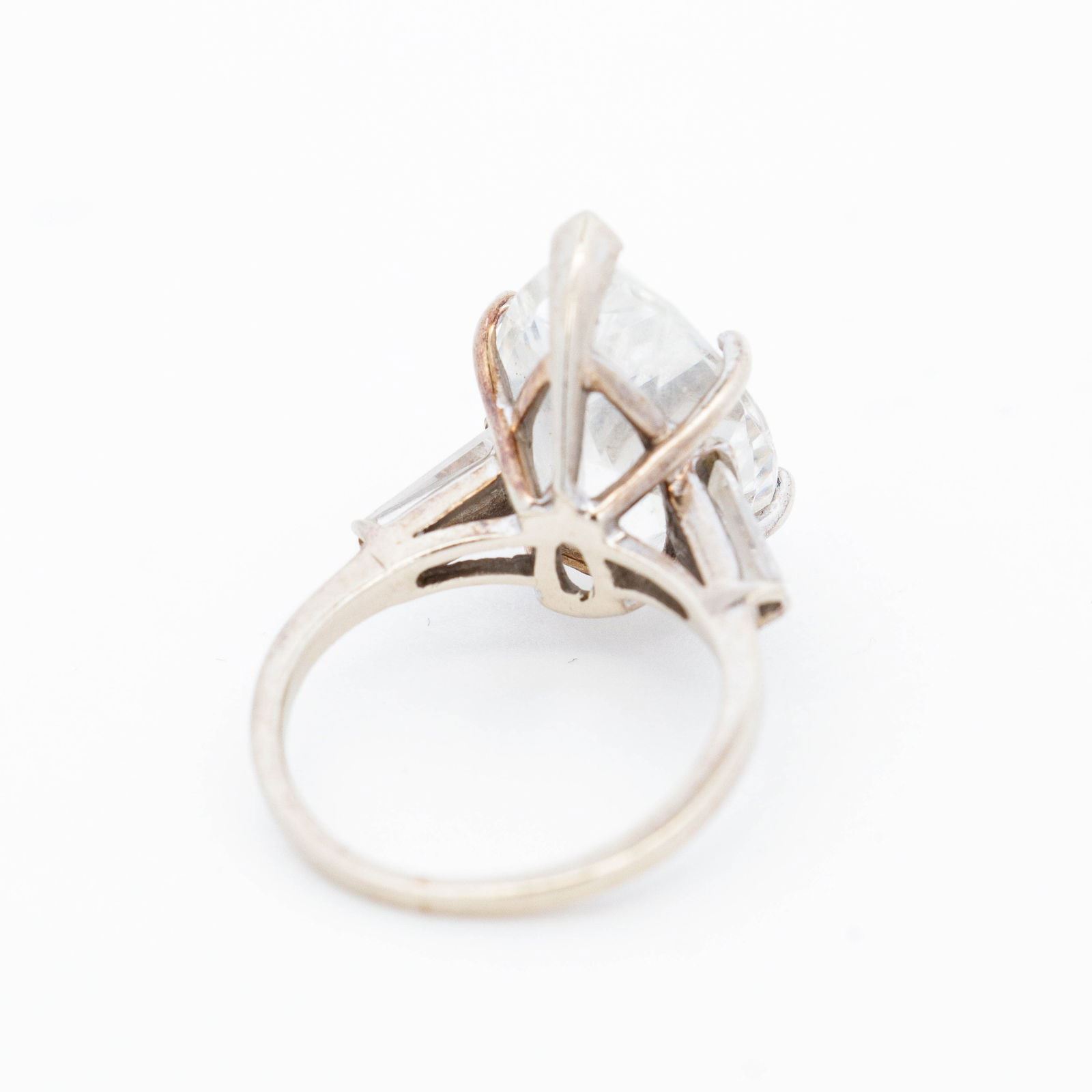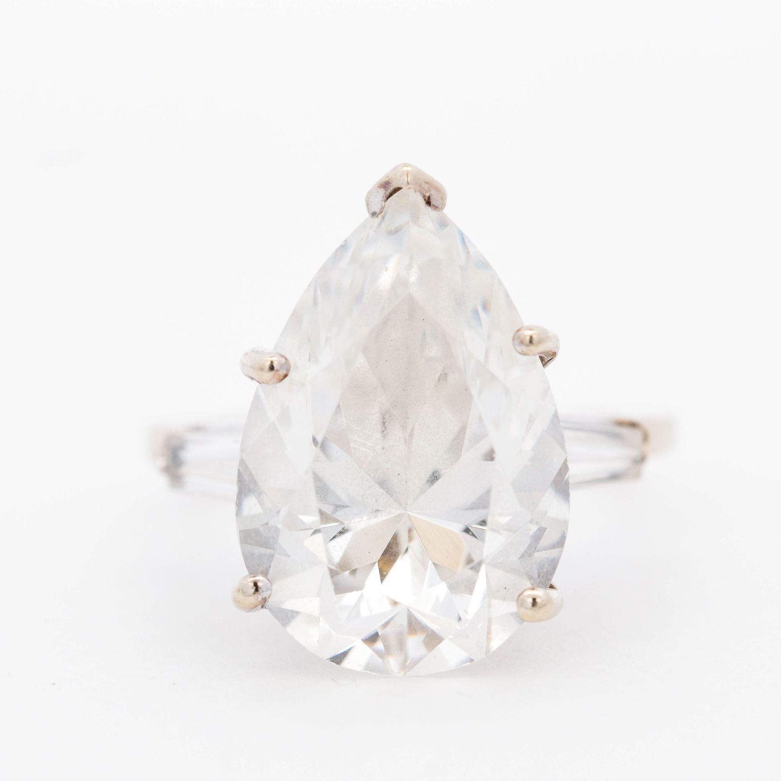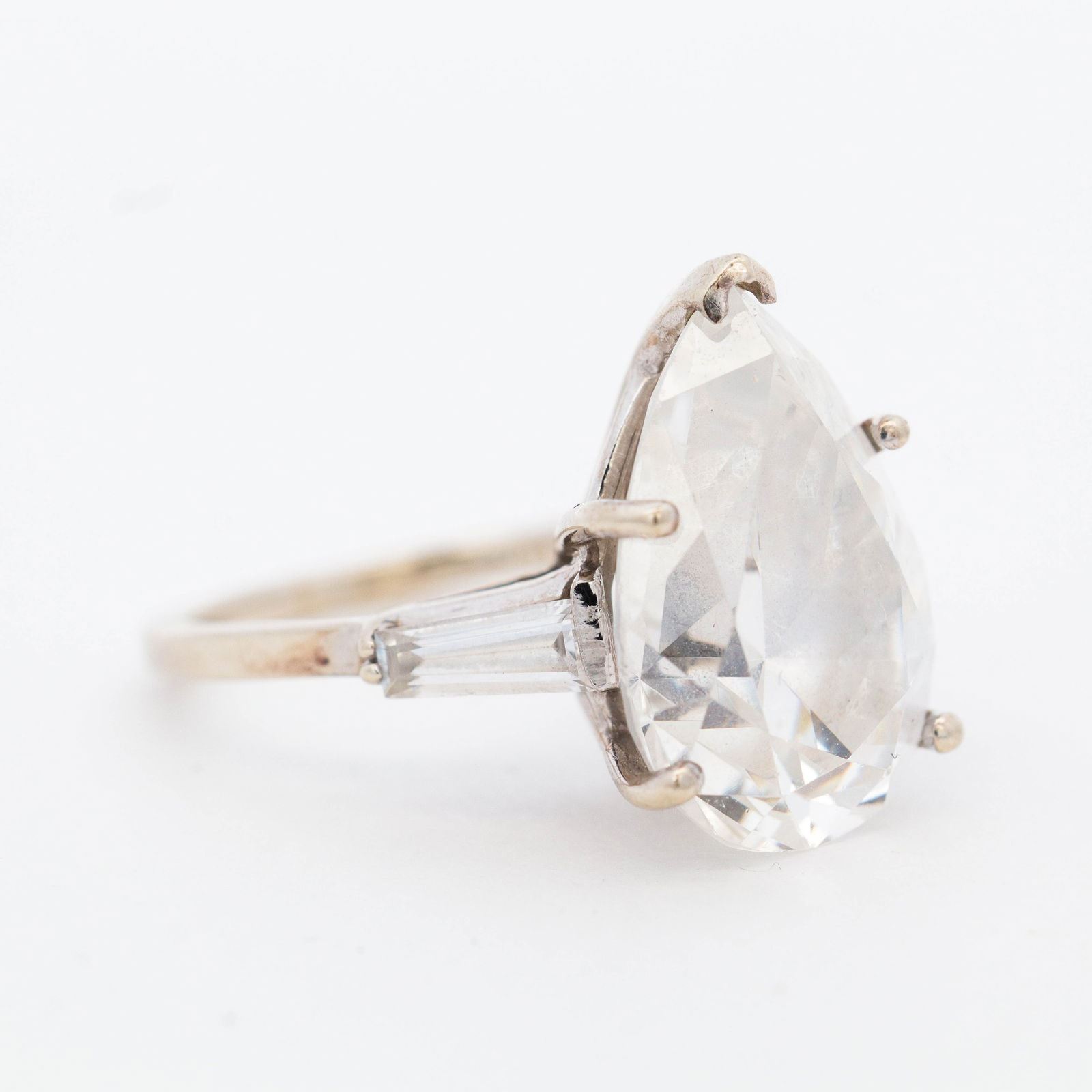 4.9 gram 14KWG Solitaire Ring with Pear Cut Colorless Stone