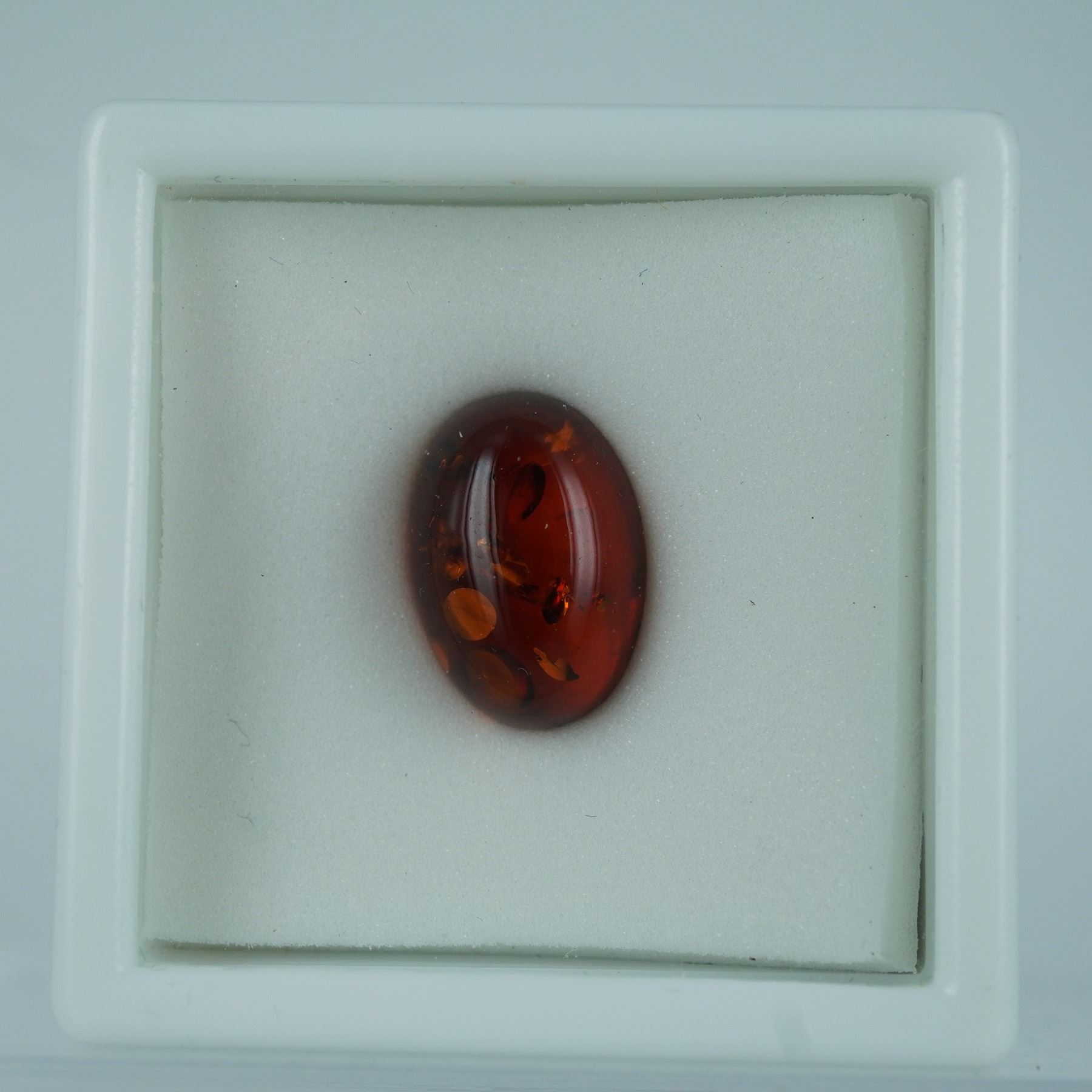 This natural Baltic amber gemstone features a rich honey-brown hue with attractive internal inclusions, showcasing the organic beauty and warmth for which amber is renowned. Cut and polished into an elegant oval cabochon, this piece is ideal for a custom ring, pendant, or other fine jewelry setting. The gemstone comes housed in a protective display case, ensuring safe storage and presentation.