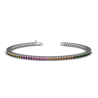 Mainstone: Multi Color Sapphire Rainbow Bracelets ; Multi-colors: red,yellow,pink,orange,green,blue ; Total CTW: 4.9 ; Metal Purity: 14kt ; Metal: W/Y Gold ; Gem Count 1:80 ; Gems CTW: 4.9 ; Gem Size(mm): Approx. 2mm Round ; Gem Clarity: AA-AAA ; Gram Weight(g): 10.1 ; MSRP: $3392