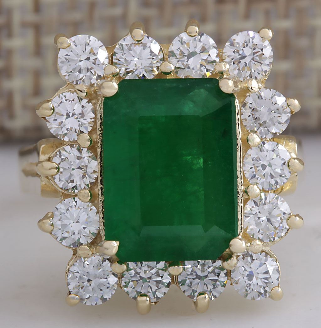 4.91 CTW Natural Emerald And Diamond Ring 18K Solid Yellow Gold