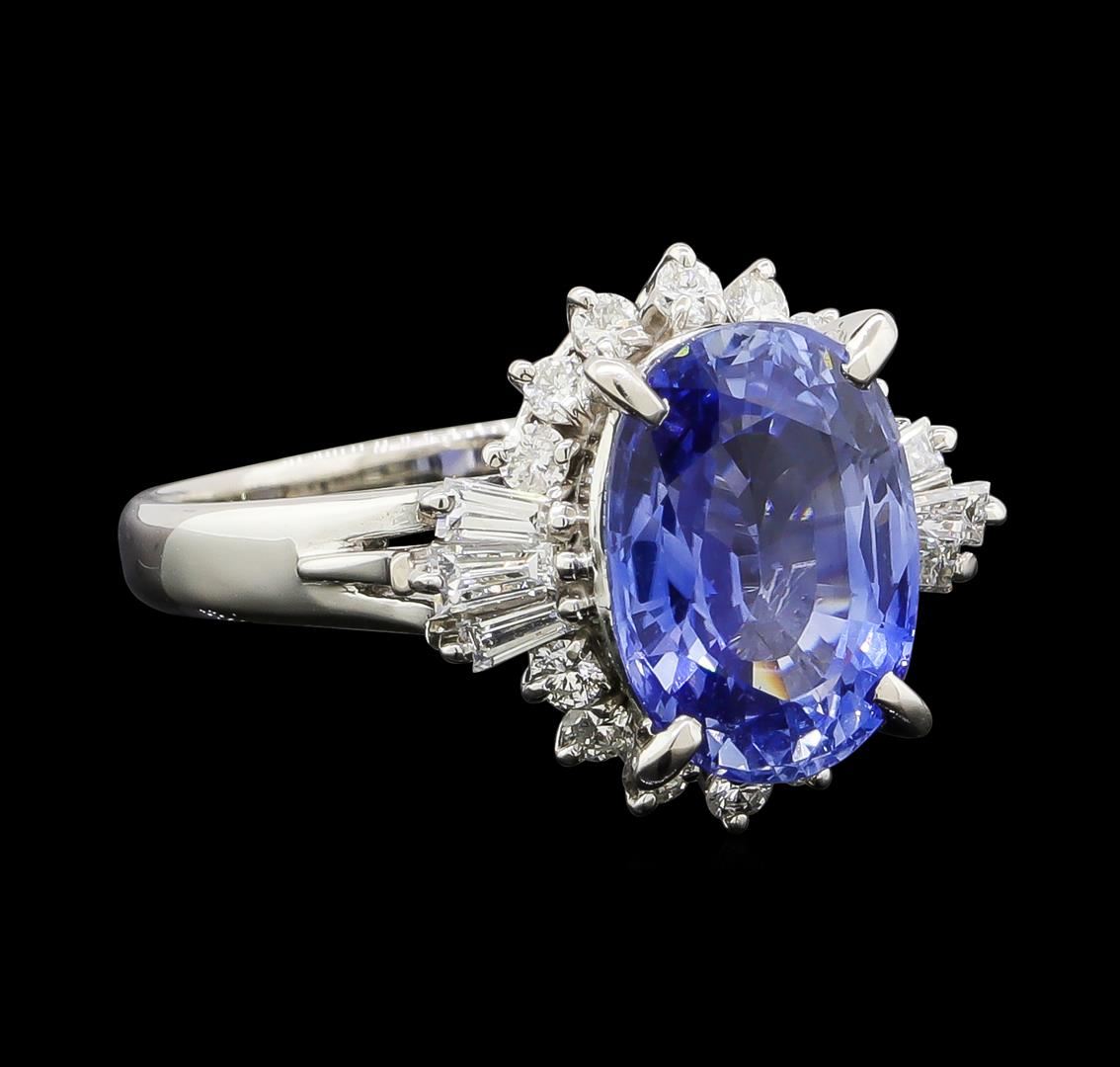One ring featuring: Platinum containing Sapphire with a total weight of 4.92ct and Diamonds with a total weight of 0.59ct. Total Weight of Ring: 7.5 grams.