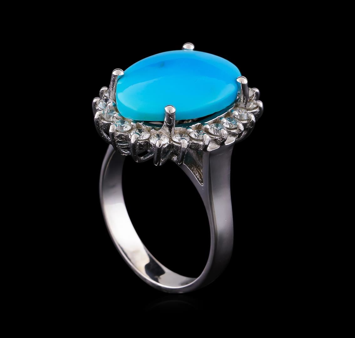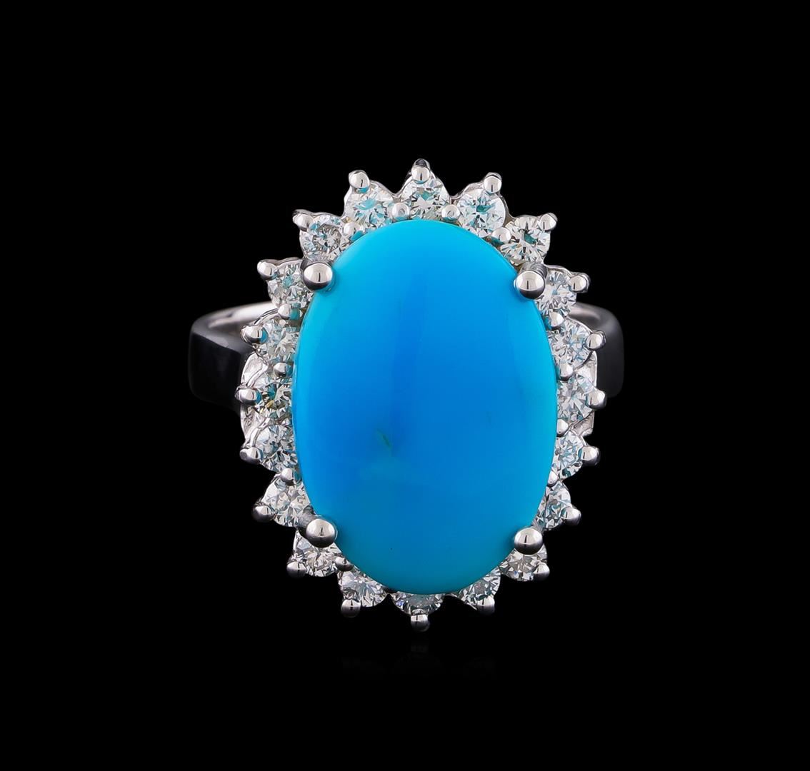 One ring featuring: 14KT white gold weighing 5.50 grams containing one turquoise center stone with a total weight of 4.92ct and diamonds with a total weight of 0.67ct.