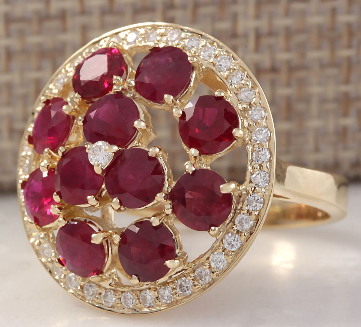 4.93 CTW Natural Red Ruby And Diamond Ring 14K Solid Yellow Gold