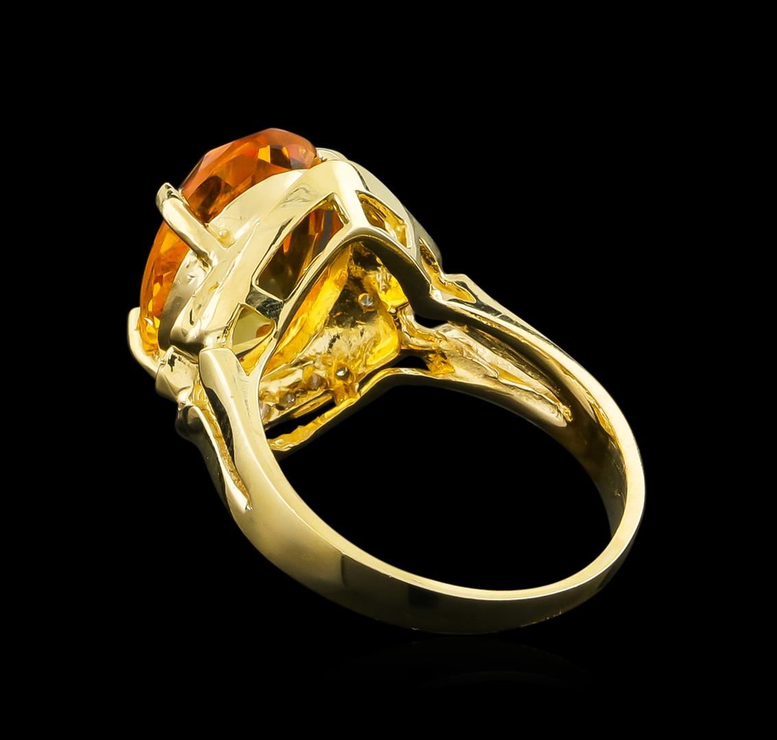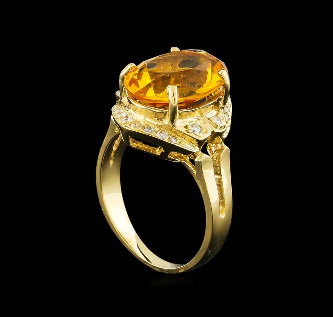 One Ring featuring: 14KT Yellow Gold weighing 4.9 grams containing one Citrine center stone with a total weight of 4.94ct and Diamonds with a total weight of 0.22ct.
