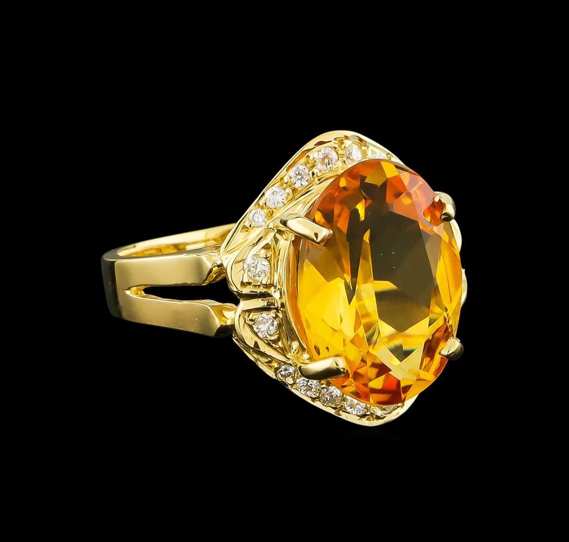 One Ring featuring: 14KT Yellow Gold weighing 4.9 grams containing one Citrine center stone with a total weight of 4.94ct and Diamonds with a total weight of 0.22ct.