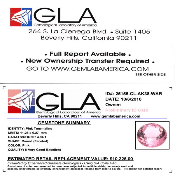 Excellent pink colored specimen round cut; lab quality evaluation 8; treatment as noted; Gem Guide wholesale $1482-$2470; full retail appraisal $10226; full lab evaluation available