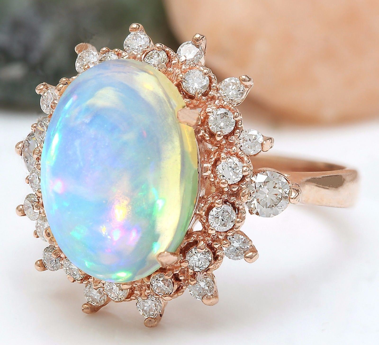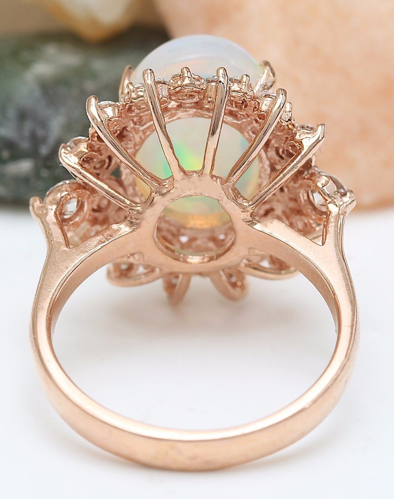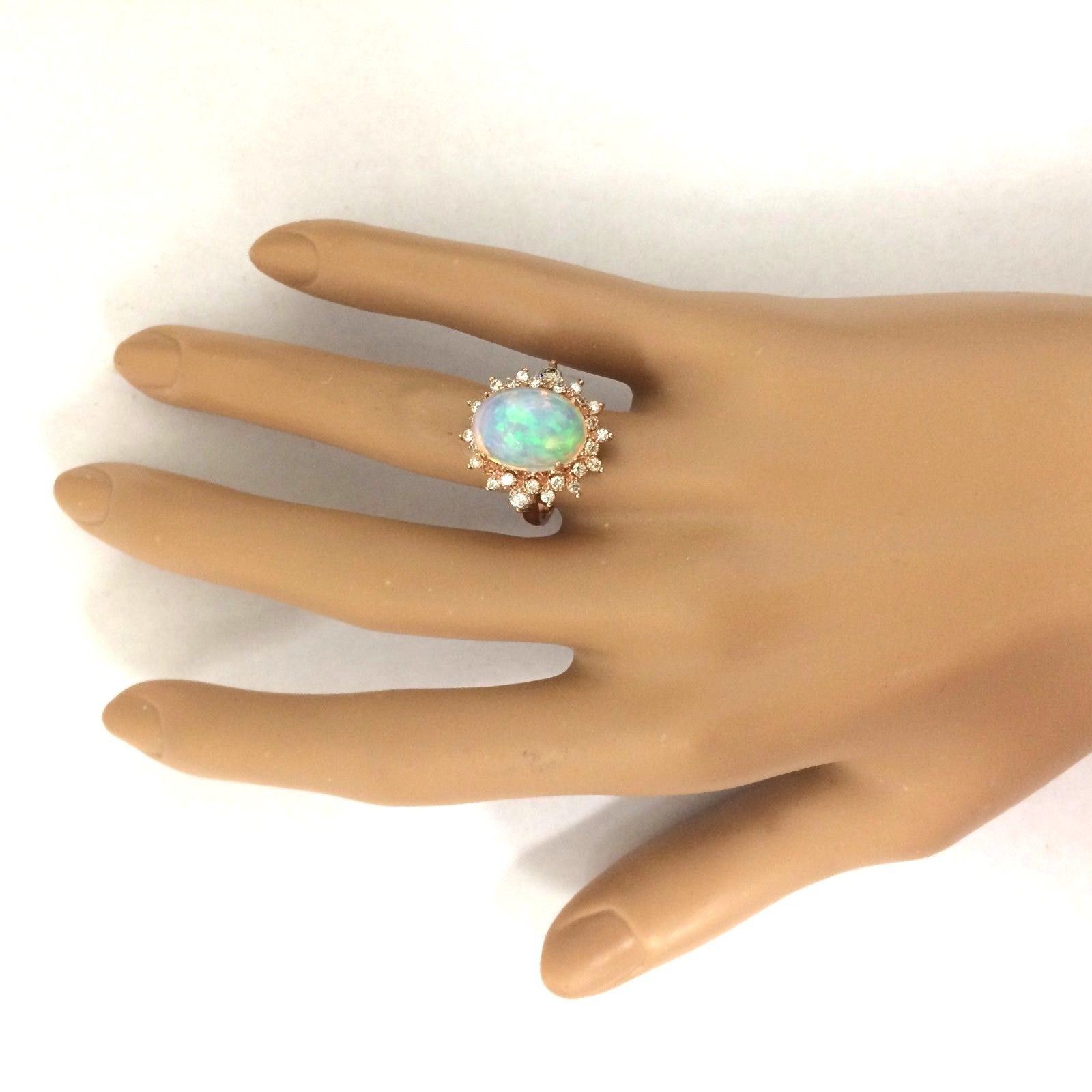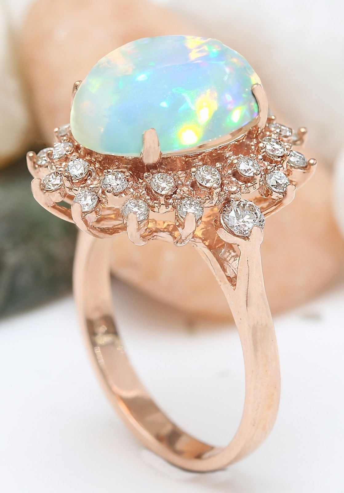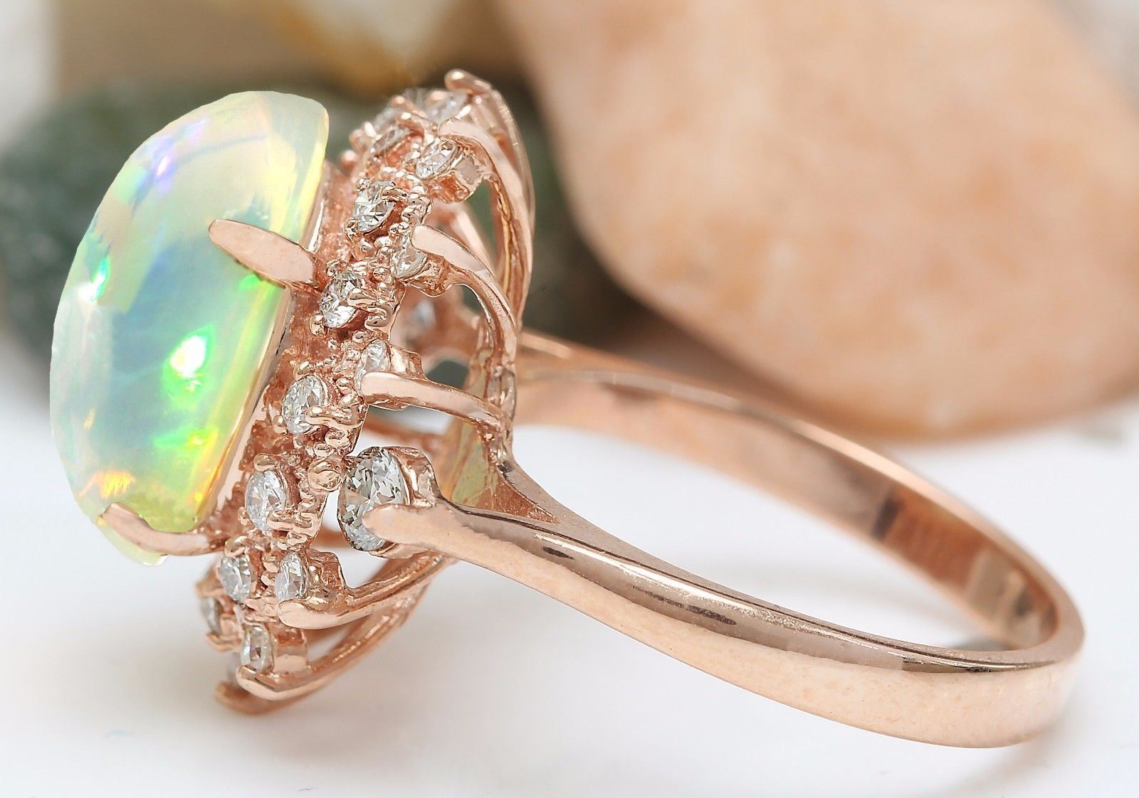 4.95 Carat Natural Opal 14K Solid Rose Gold Diamond Ring