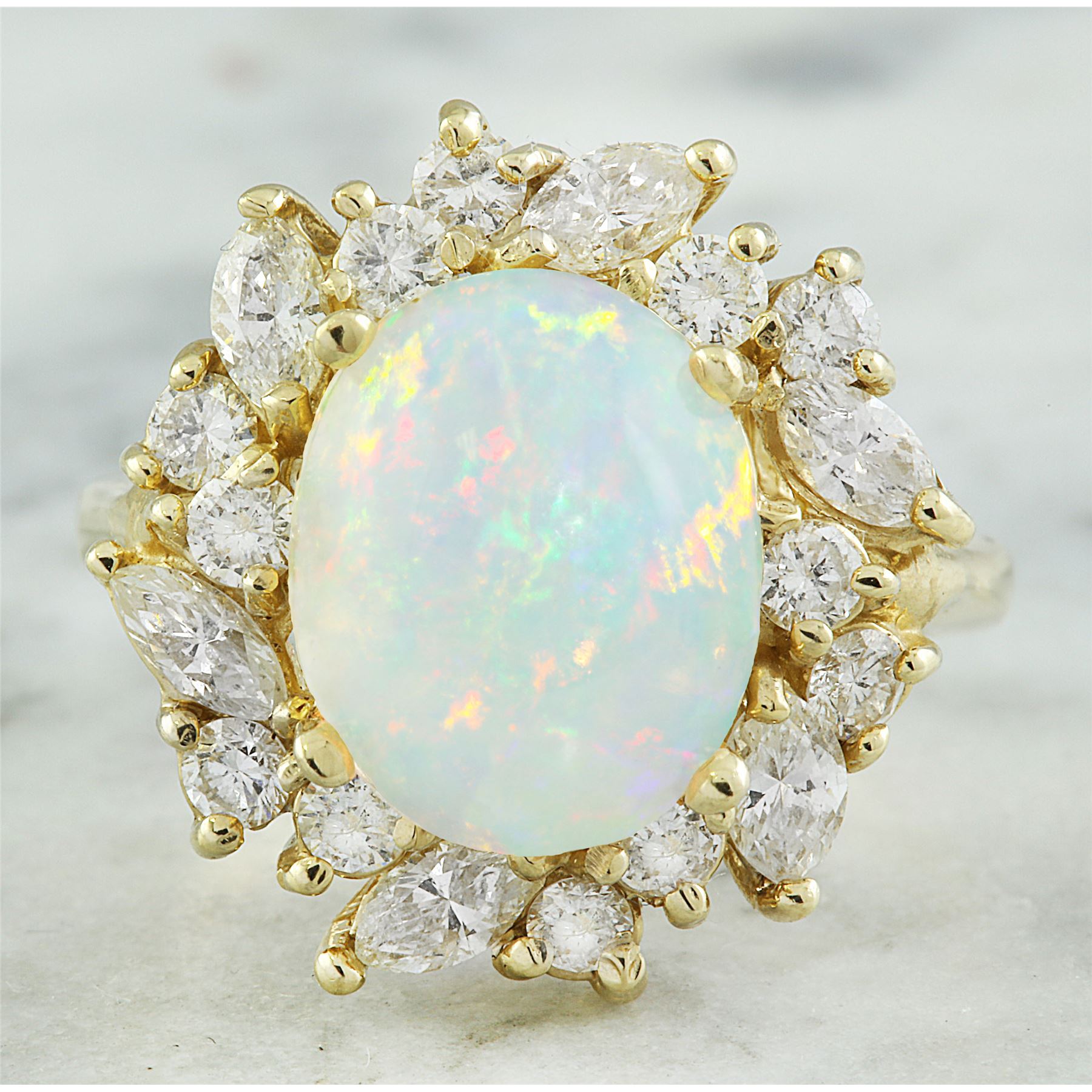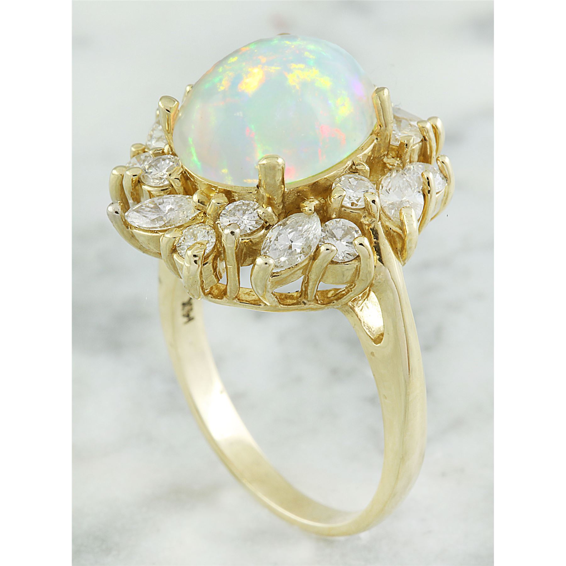 4.95 CTW Opal 14K Yellow Gold Diamond Ring