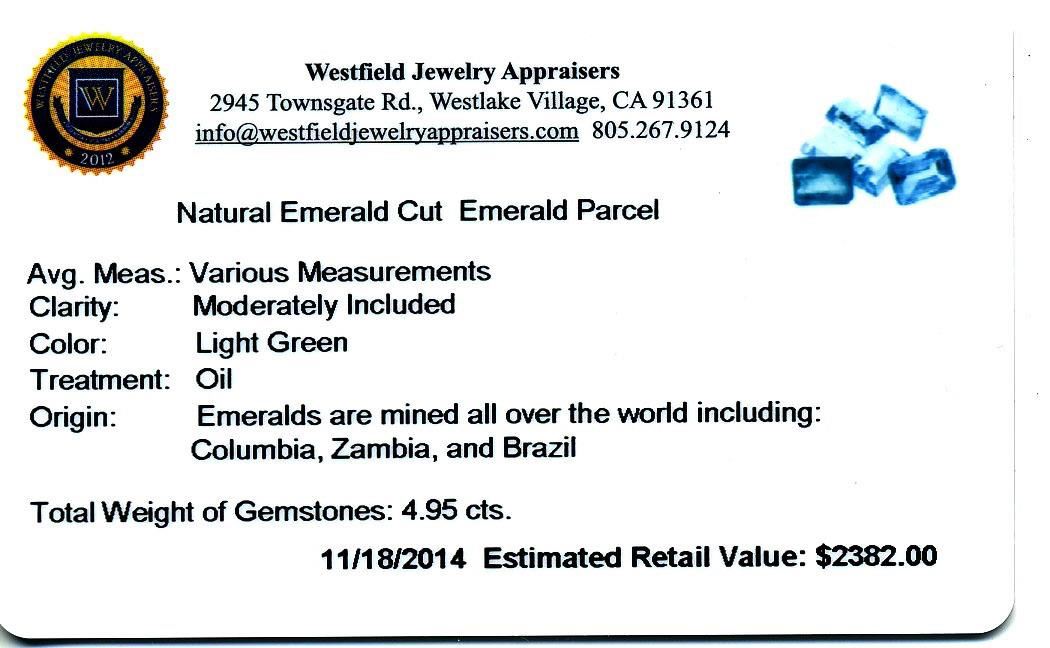 4.95cts. Natural Emerald Cut Emerald Parcel Westfield Appraised at $2,382.00.