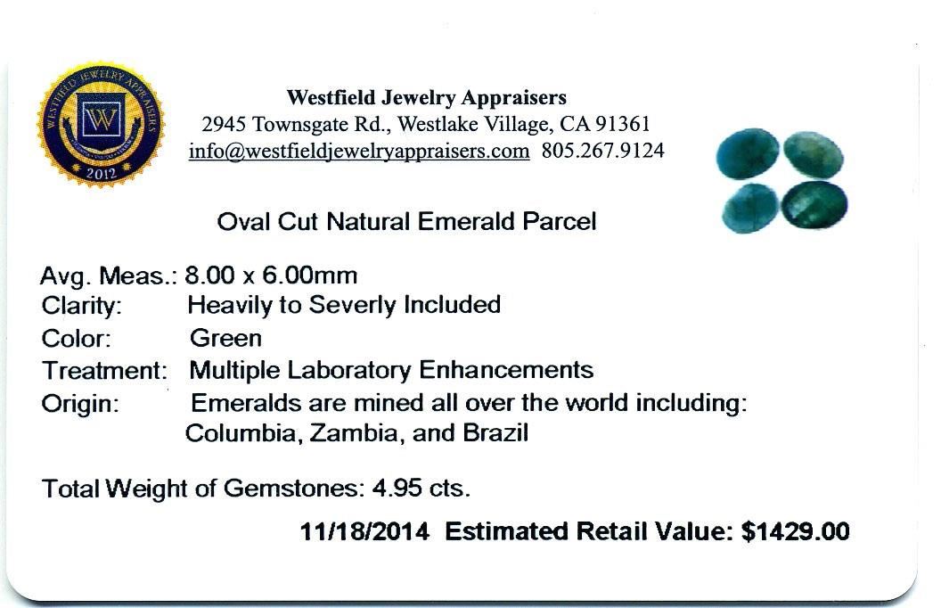 4.95cts. Oval Cut Natural Emerald Parcel Westfield Appraised at $1,429.00.