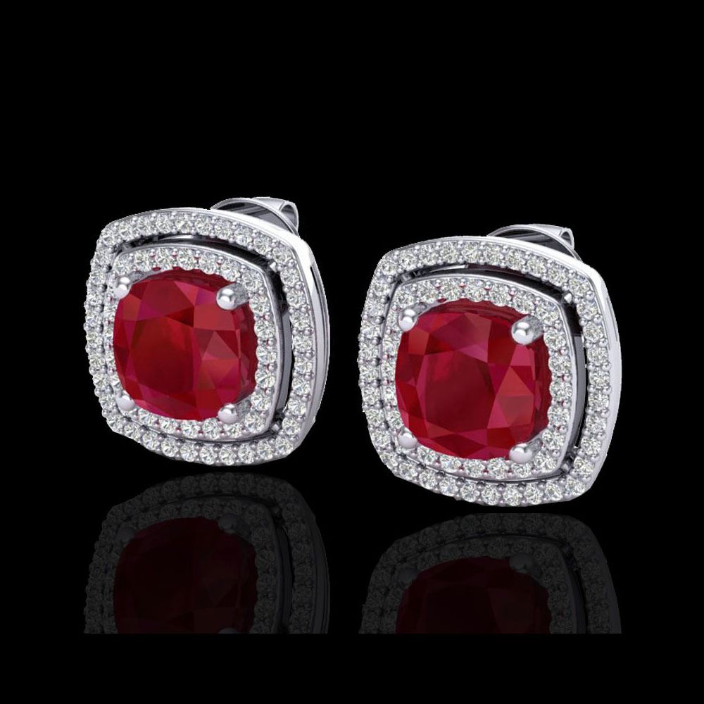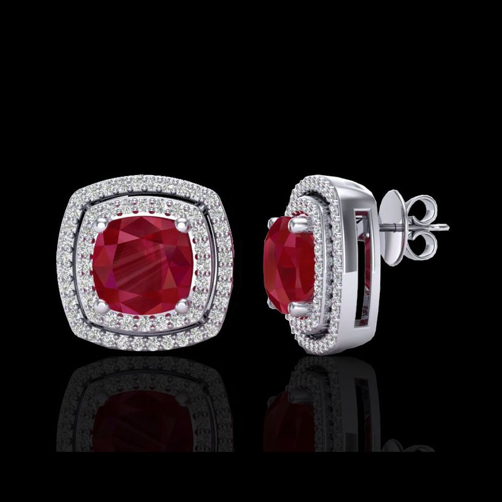 4.95 ctw Ruby & Micro Pave VS/SI Diamond Earrings 18K White Gold