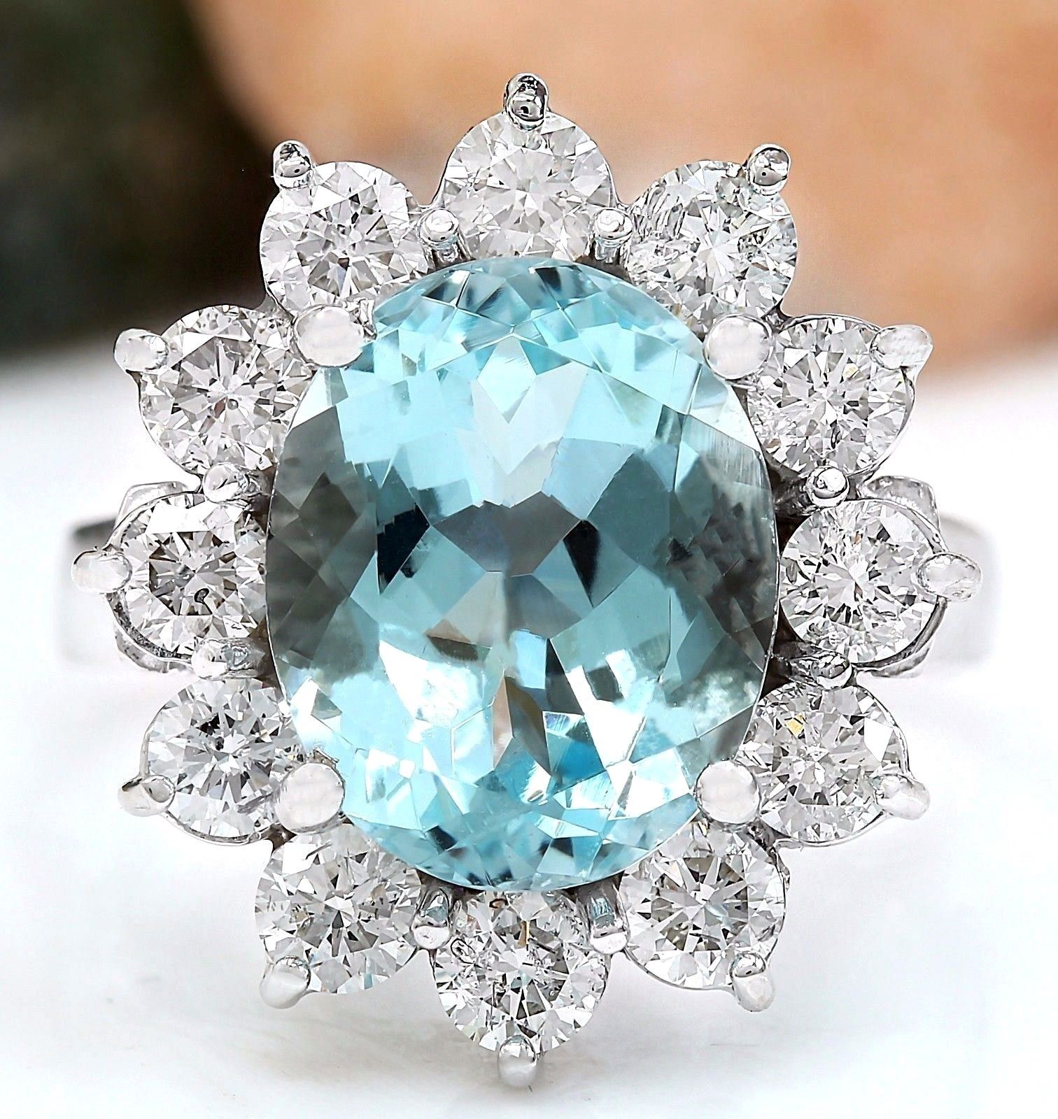 4.96 Carat Natural Aquamarine 14K Solid White Gold Diamond Ring