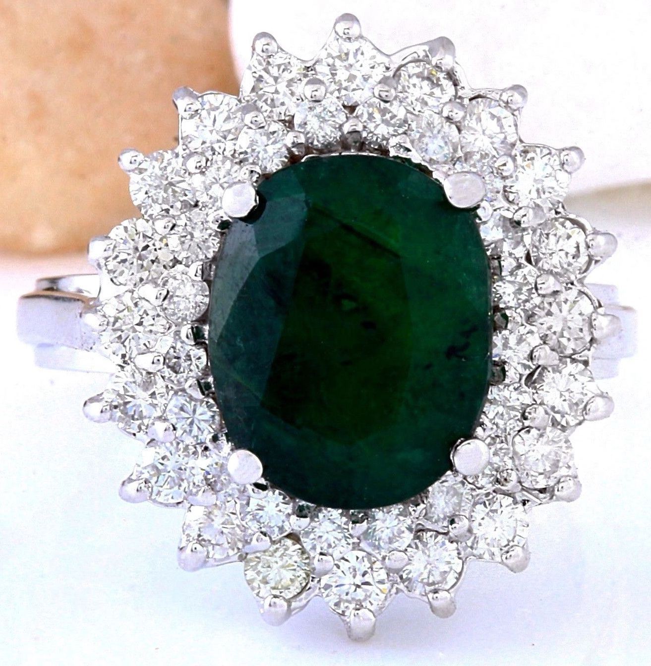 4.96 Carat Natural Emerald 14K Solid White Gold Diamond Ring