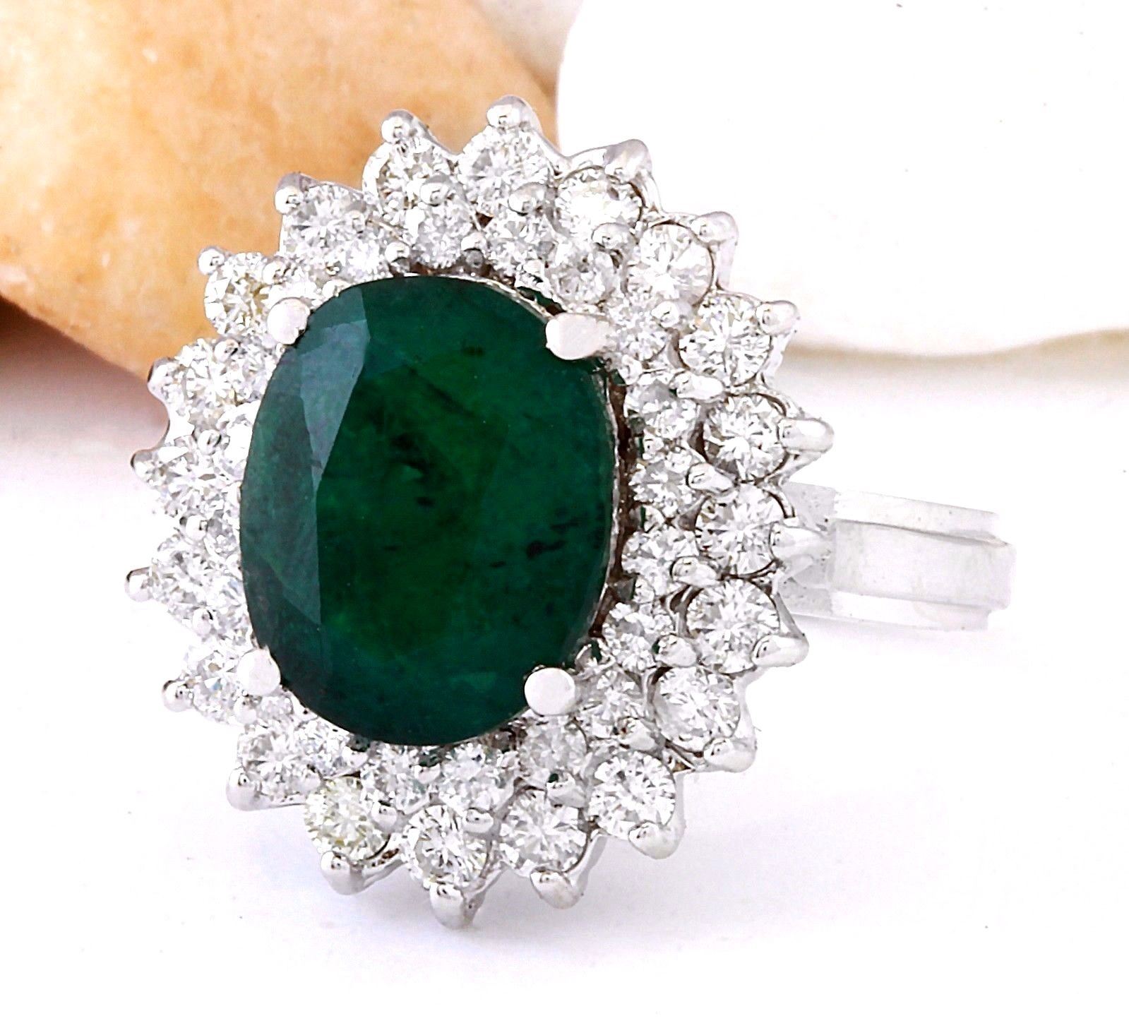 4.96 Carat Natural Emerald 18K Solid White Gold Diamond Ring