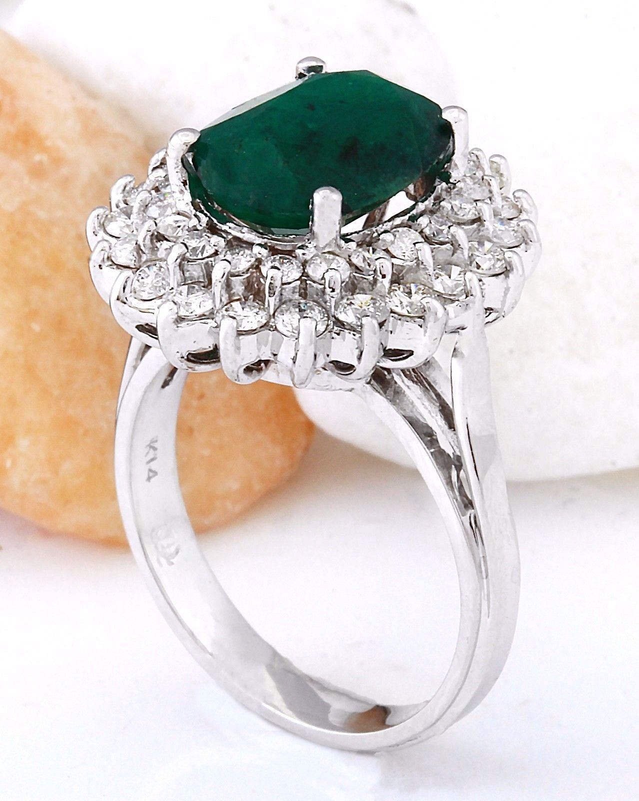 4.96 CTW Natural Emerald 18K Solid White Gold Diamond Ring