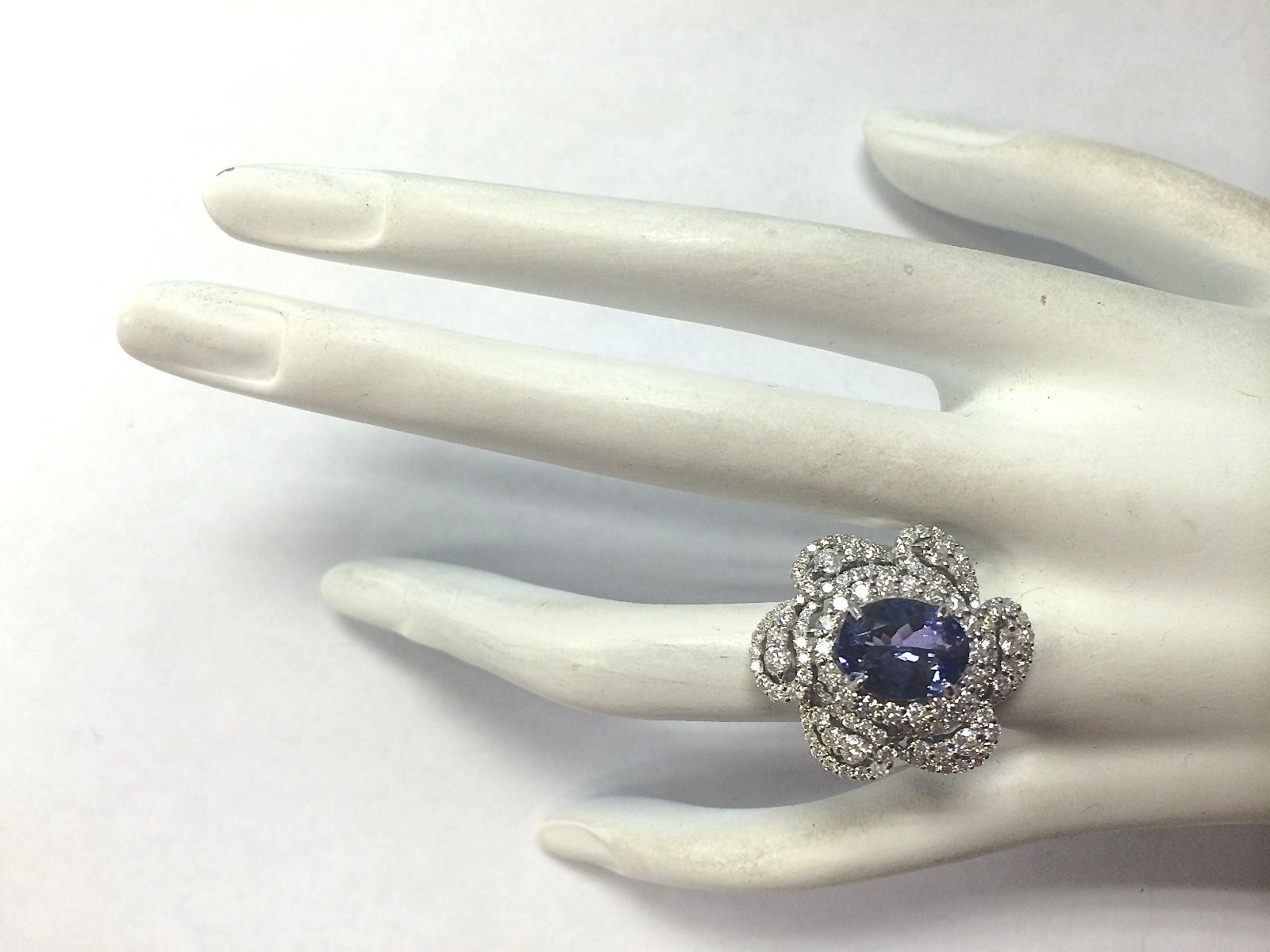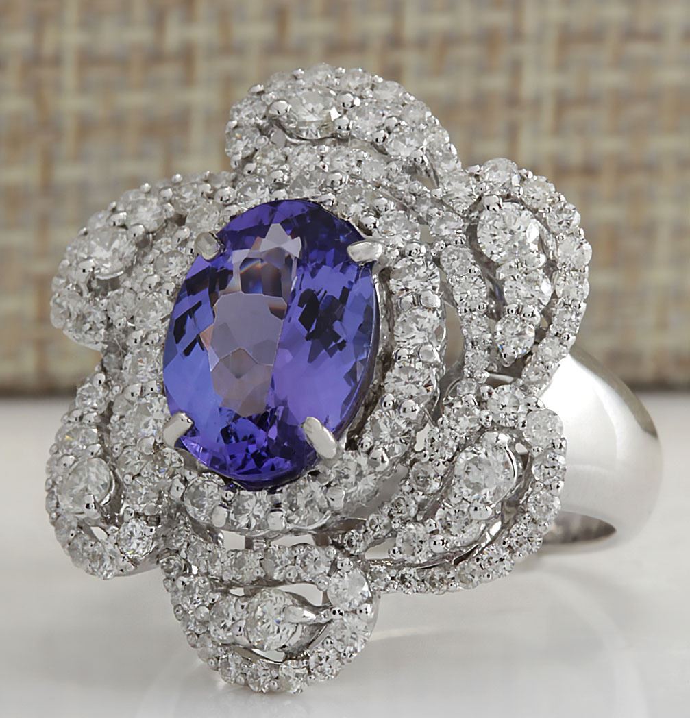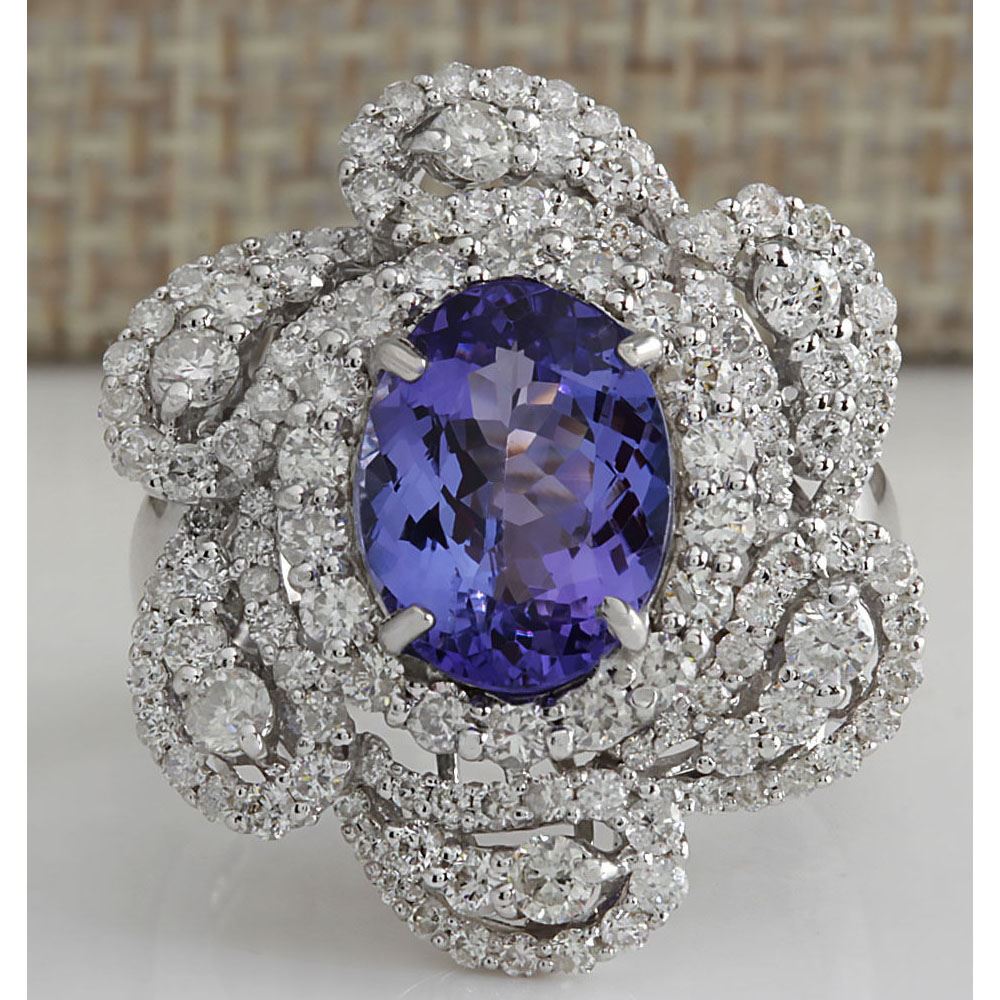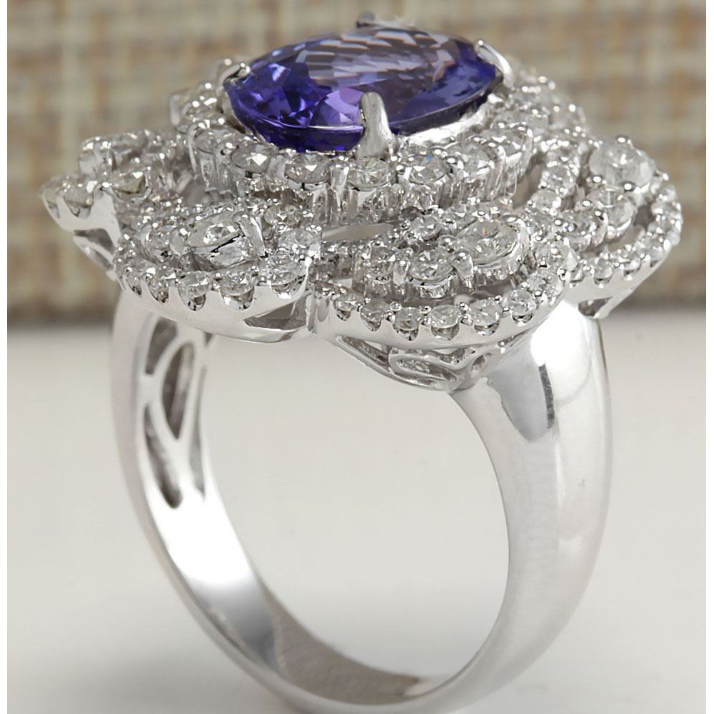 4.97 CTW Natural Tanzanite And Diamond Ring 18K Solid White Gold