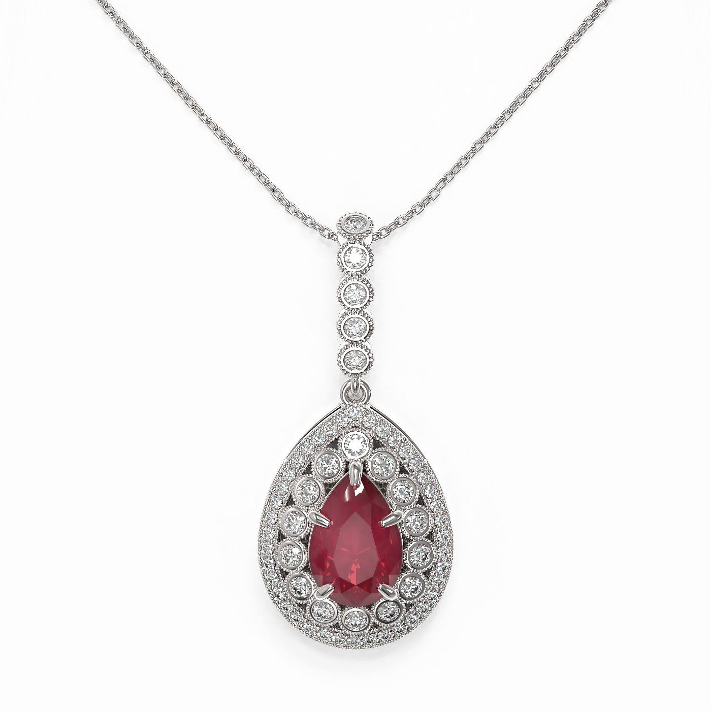 REF-160Y2X - SKU: 43202 ---- 4.97 ctw Certified Ruby & Diamond Victorian Necklace 14K White Gold