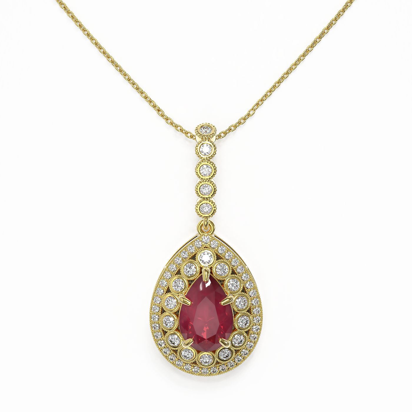 REF-160F2M - SKU: 43204 ---- 4.97 ctw Certified Ruby & Diamond Victorian Necklace 14K Yellow Gold