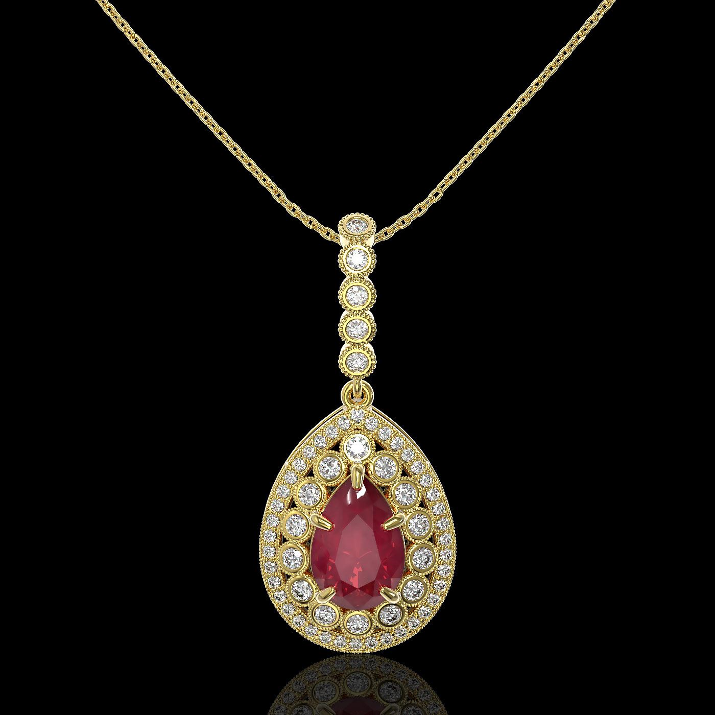 REF-160N2F - SKU: 43204 ---- 4.97 ctw Certified Ruby & Diamond Victorian Necklace 14K Yellow Gold