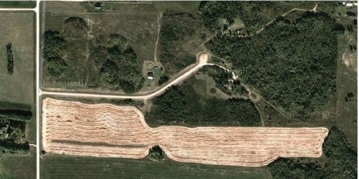 AIR PHOTO, BLUEBIRD WAY ROAD DIVIDES THE PROPERTY WITH LOTS ON NORTH AND SOUTH SIDES. THE SOUTH FIELD IS CUT HAY AND NEW SHELTER BELT.