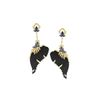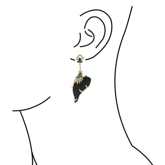 4.99 TCW 18K GOLD Jet BlacK , BLUE SAPPHIRE & DIAMOND WING EARRING