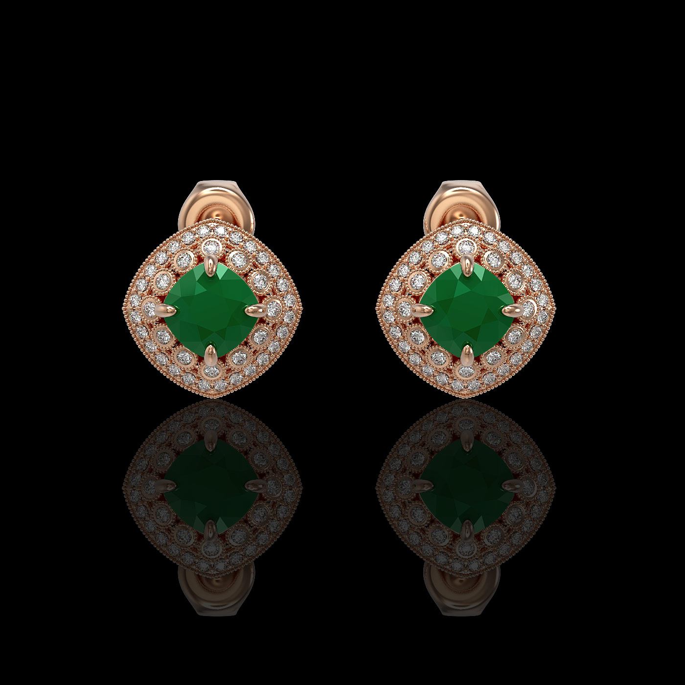 REF-128X5A - SKU: 44121 ---- 4.99 ctw Certified Emerald & Diamond Victorian Earrings 14K Rose Gold