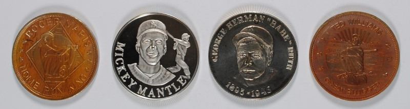 4 - .999 SILVER ROUNDS - MANTLE, RUTH, WILLIAMS, MARIS - TOTAL ( 4 ozt) SILVER