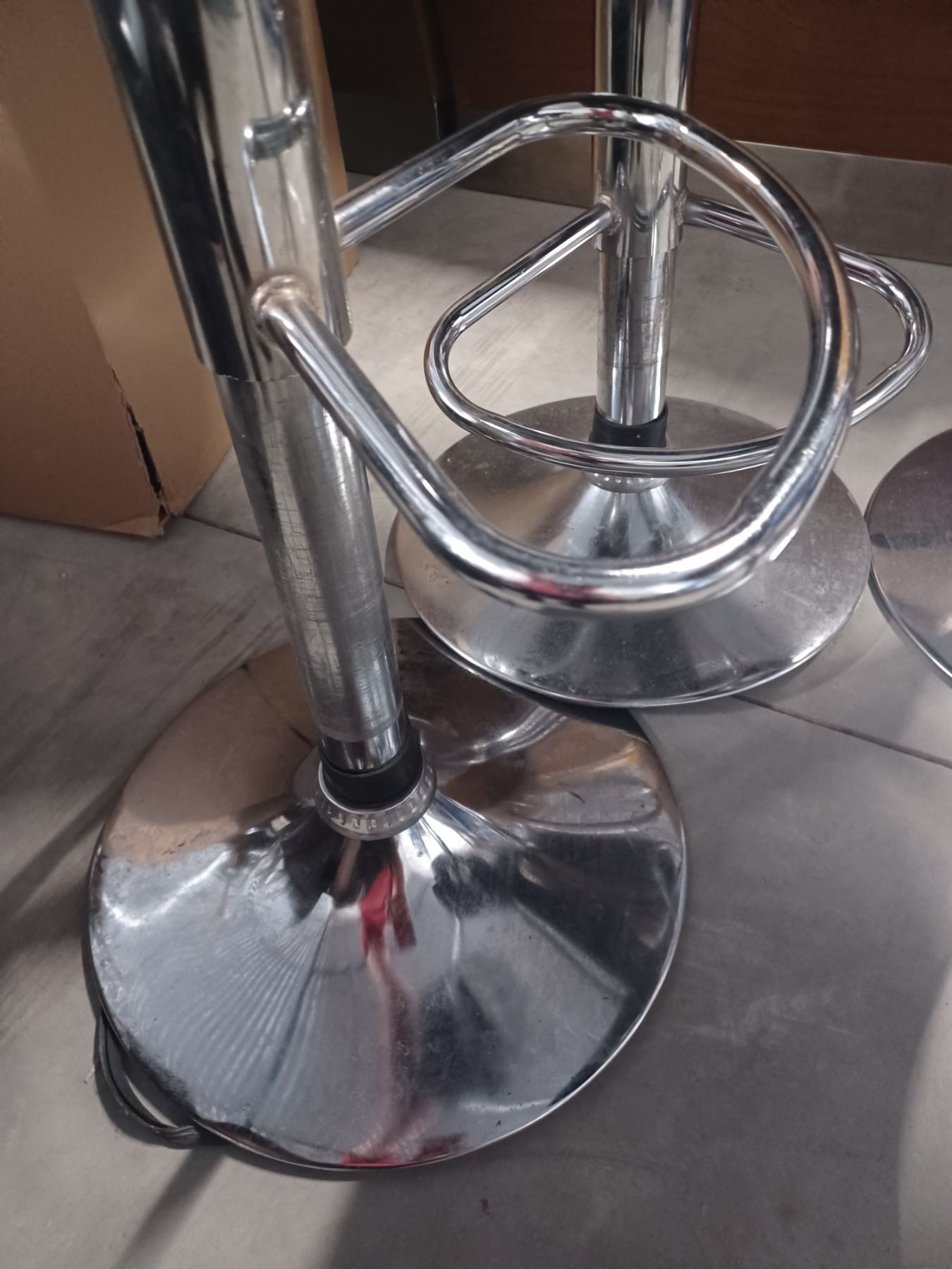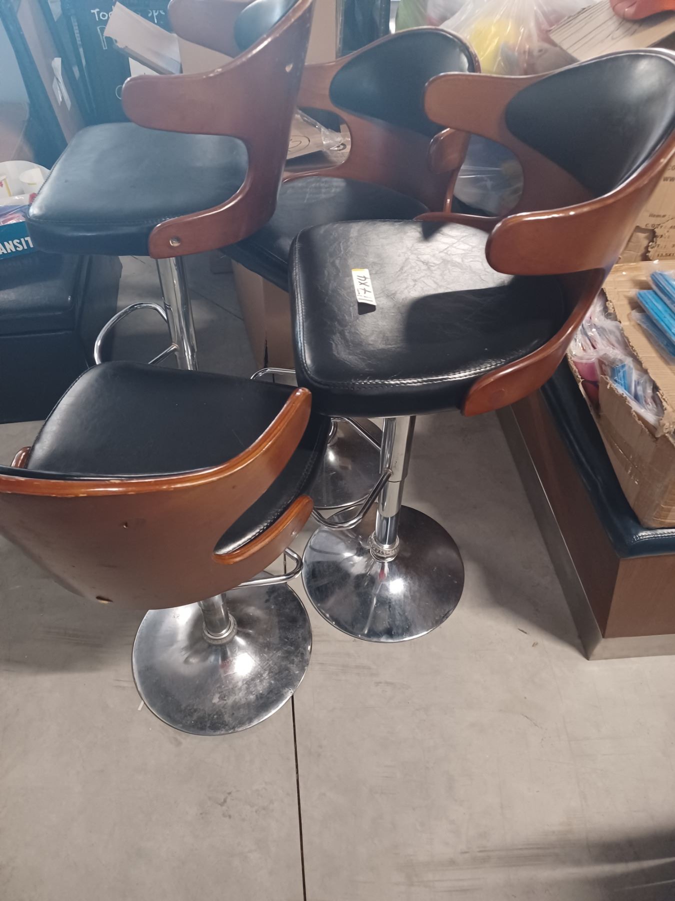 4- ADJUSTABLE WOOD BAR STOOLS w/ VINYL SEATING