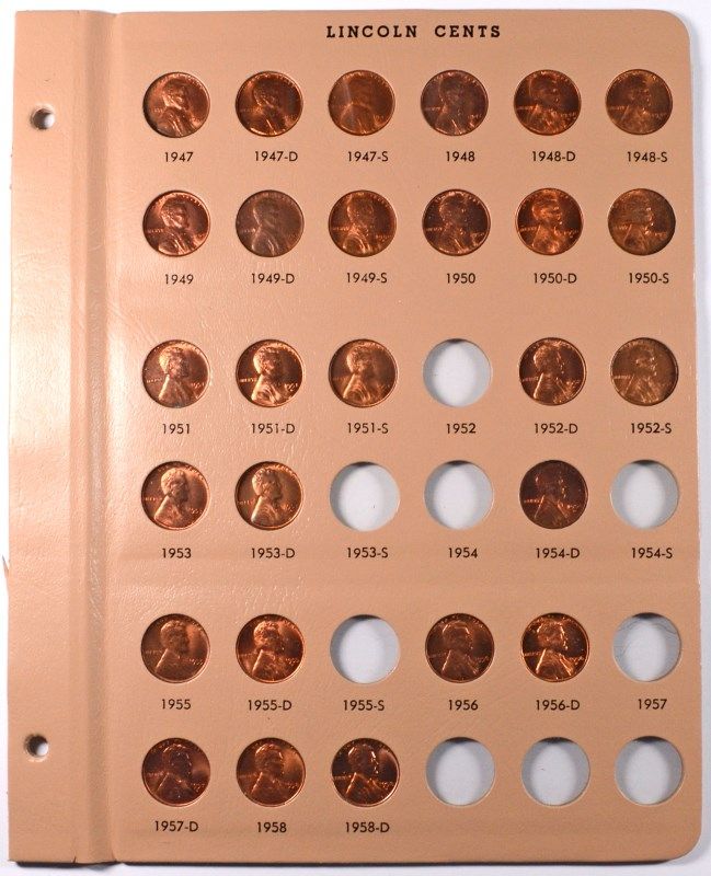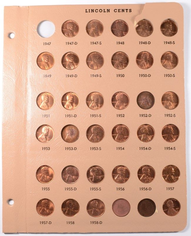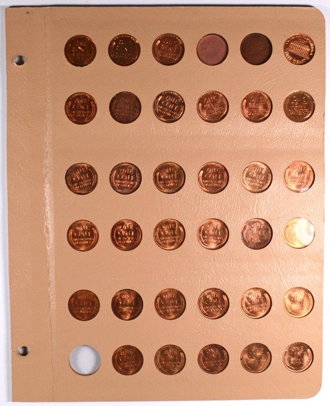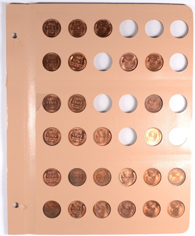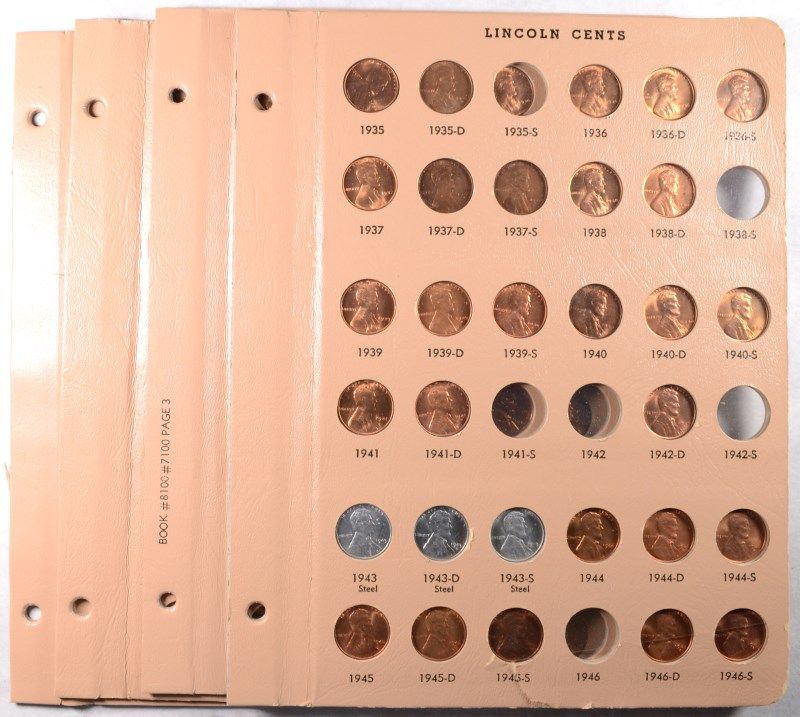 ( 4 ) ALBUM SHEETS CONTAINING BU LINCOLN CENTS FROM 1930'S, 40'S AND 50'S