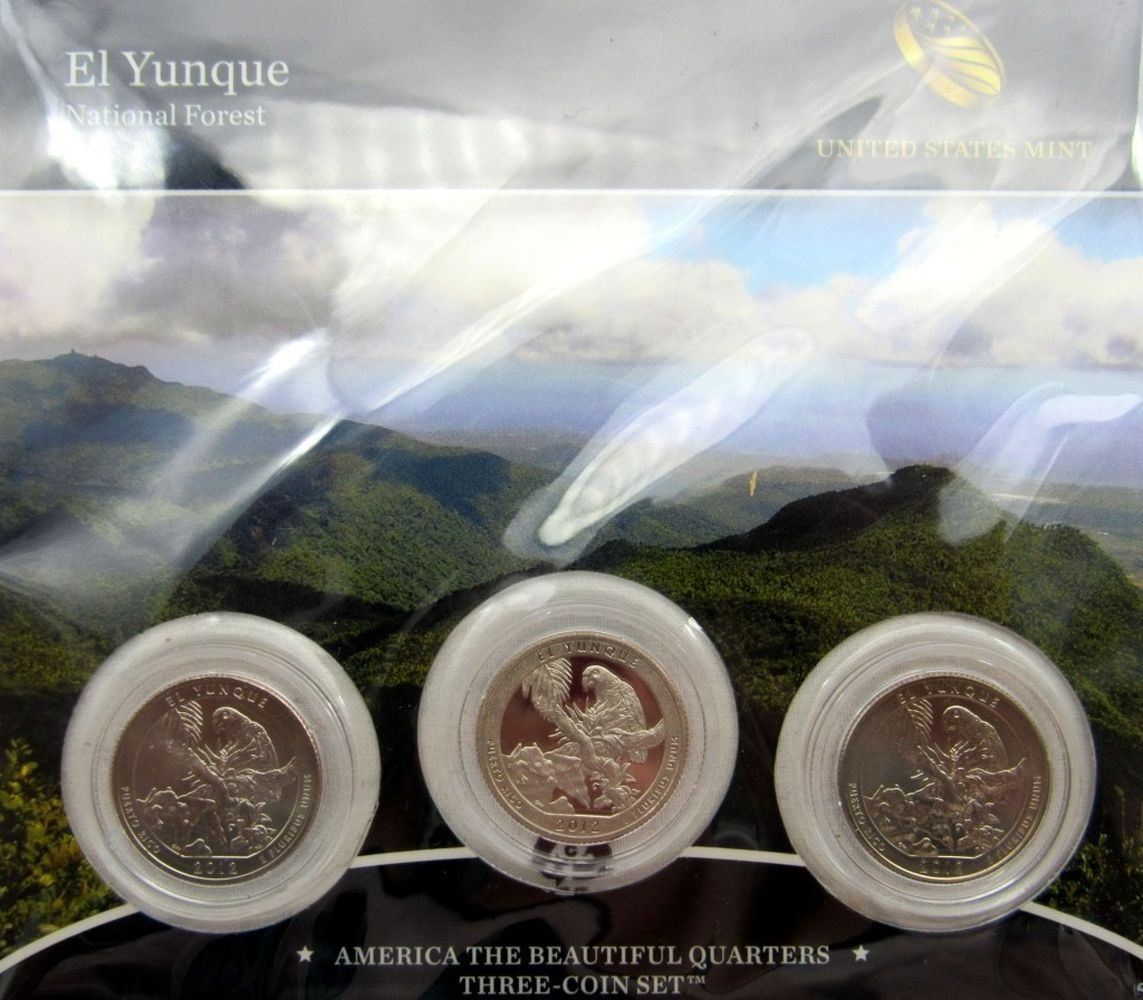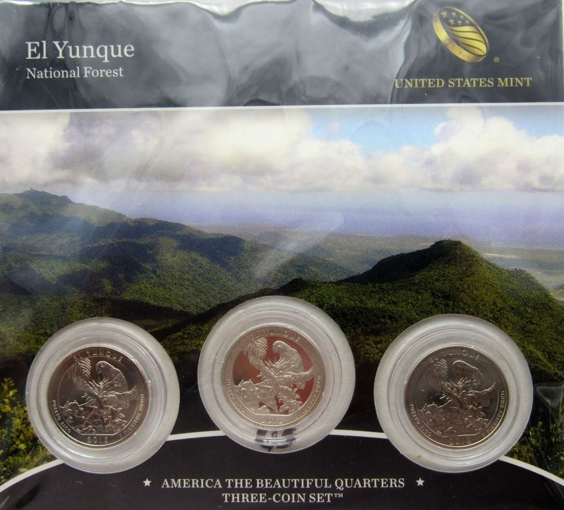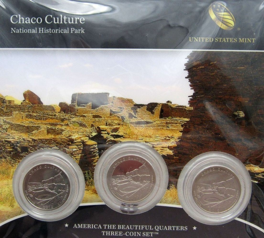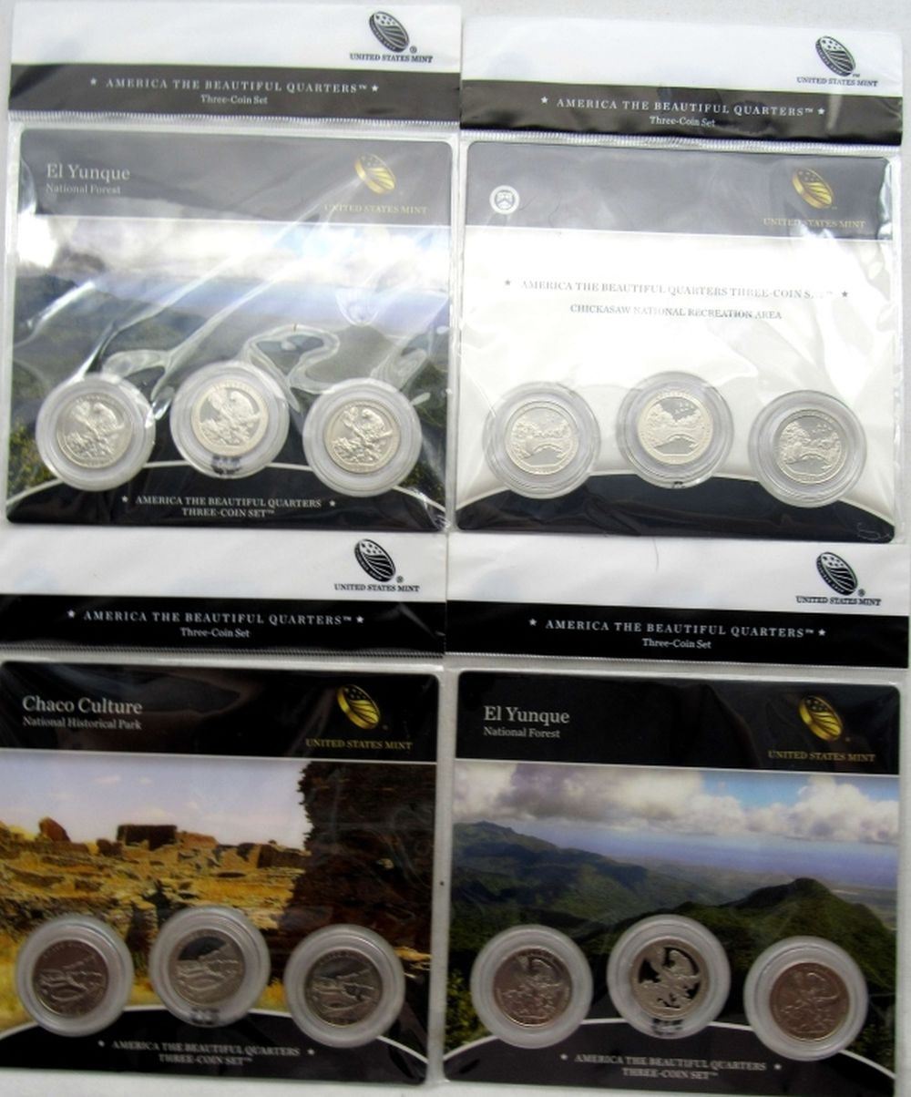 ORIGINAL U.S. MINT PACKAGES; 2011 CHICKASAW 3 COIN SET; 2012 CHACO 3 COIN SET; 2 - 2012 EL YUNQUE 3 COIN SET