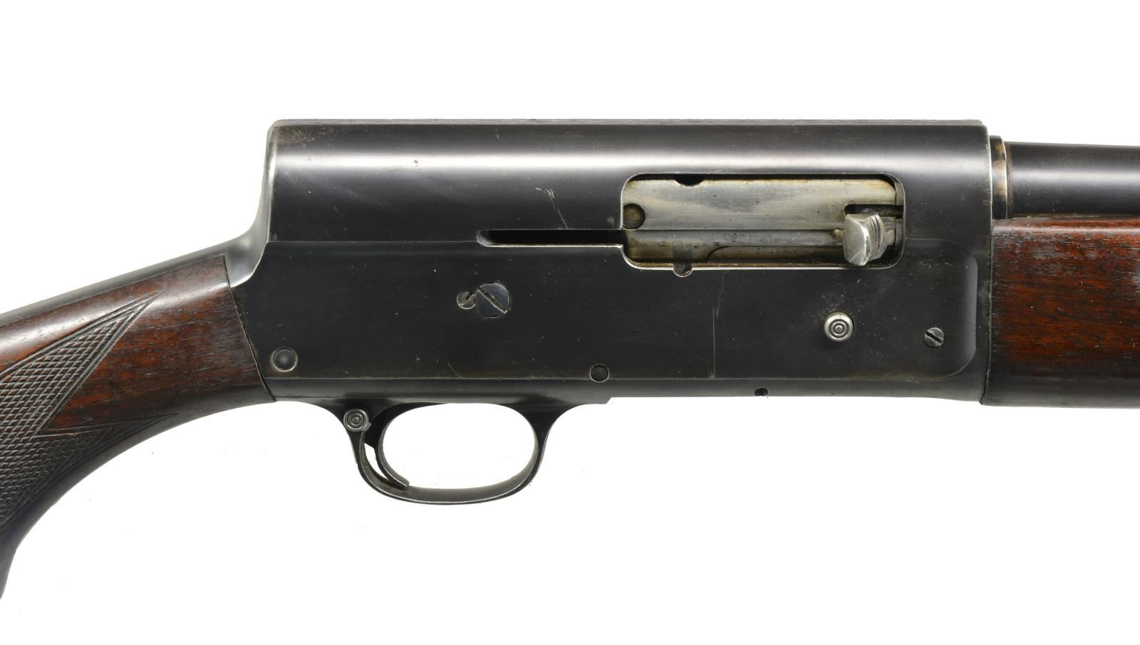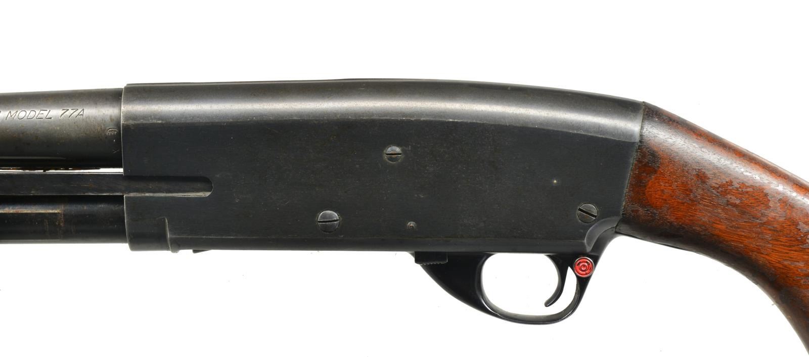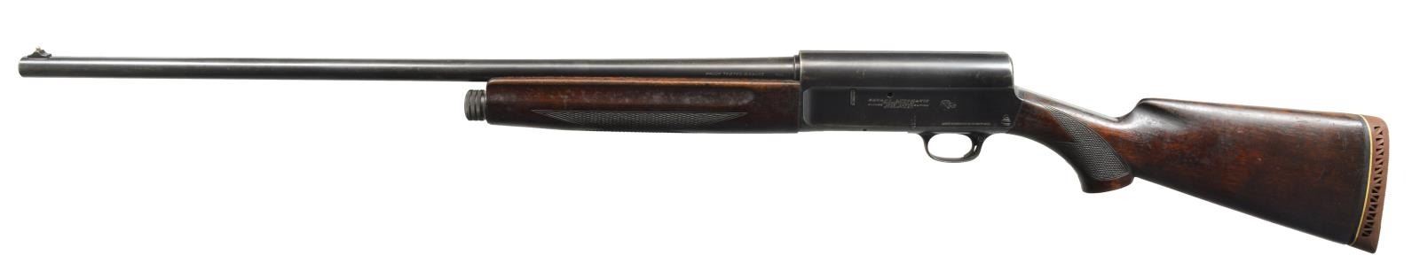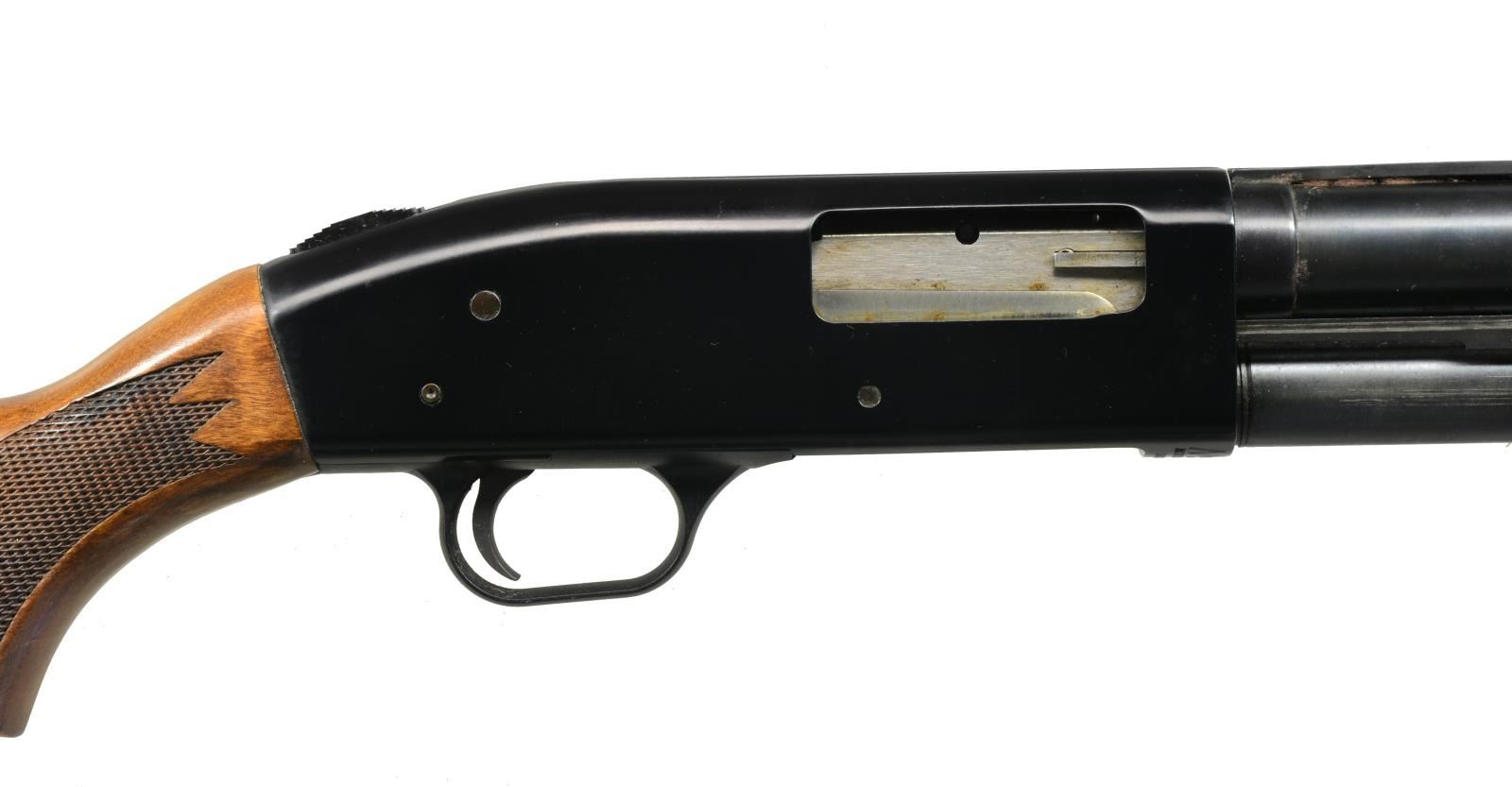 1) SAVAGE AUTOMATIC. Cal. 16 Ga. S# 18513. Bbl. 28" plain w/ fixed Full choke & ramp mounted steel bead. Recoil operated action w/ squared back receiver marked "JOHN M BROWNING PATENT 1900". Finger grooved checkered walnut forearm & pistol grip stock. LOP: 13 7/8" over aftermarket Pachmayr pad. CONDITION: 80% dull lightly faded blue showing sm. spots of corrosion. Wood has age darkened worn appearance showing handling marks & numerous mildew spots. Stock has a sm. crack extending from left side of receiver w/ lg. crack extending from recoil pad. Bore is generally bright w/ spots of pitting in choke area. (20-2758/DS). CURIO. 2) STEVENS MODEL 77A PUMP. Cal. 12 Ga., 2 3/4". NSN. Bbl. 28" plain over Savage Super-Choke adj. compensator. Aluminum front bead. Grooved walnut extension forearm. Pistol grip walnut stock. LOP: 14 1/8" over aftermarket recoil pad. CONDITION: 75% lightly faded blue showing spots of surface corrosion. Wood has dark worn appearance w/ peeling finish, scratches & handling marks having a sm. chip right of trigger guard tang. Good bright bore. (20-2762/DS). CURIO. 3) MOSSBERG MODEL 500A PUMP. Cal. 12 Ga., 2 3/4" & 3". S# K839323. Bbl. 28" VR w/ interchangeable choke; IC tube included. White front bead w/ brass mid bead. Alloy action w/ sliding top safety. Hardwood forearm & pistol grip stock w/ pressed checkering & original recoil pad. CONDITION: 90% metal finish showing scattered spots of rust on bbl. Wood show a few mildew spots. Good bright bore. (20-2771/DS). MODERN. 4) HIGH STANDARD FLIGHT KING DELUXE K2011 PUMP. Cal. 20 Ga., 2 3/4" & 3". S# 3061266. Bbl. 28" plain w/ fixed Mod. choke. Blued steel action w/ alloy trigger guard & jeweled bolt. Finger groove walnut forearm & plastic capped pistol grip stock w/ pressed checkering. LOP: 14" over recoil pad & white line spacer. CONDITION: 90% blue showing sm. spots of surface corrosion. Wood has good finish showing sm. scratches & marks. Bore is bright showing a slight ring in choke area. (20-2776/DS). MODERN. $500-750.